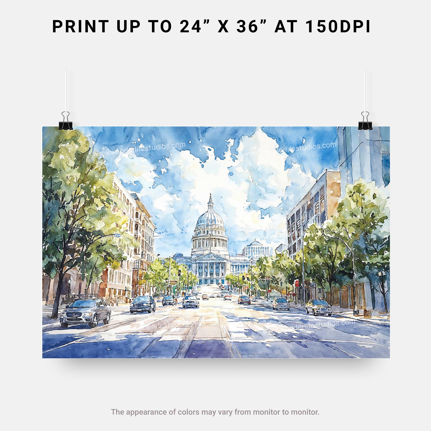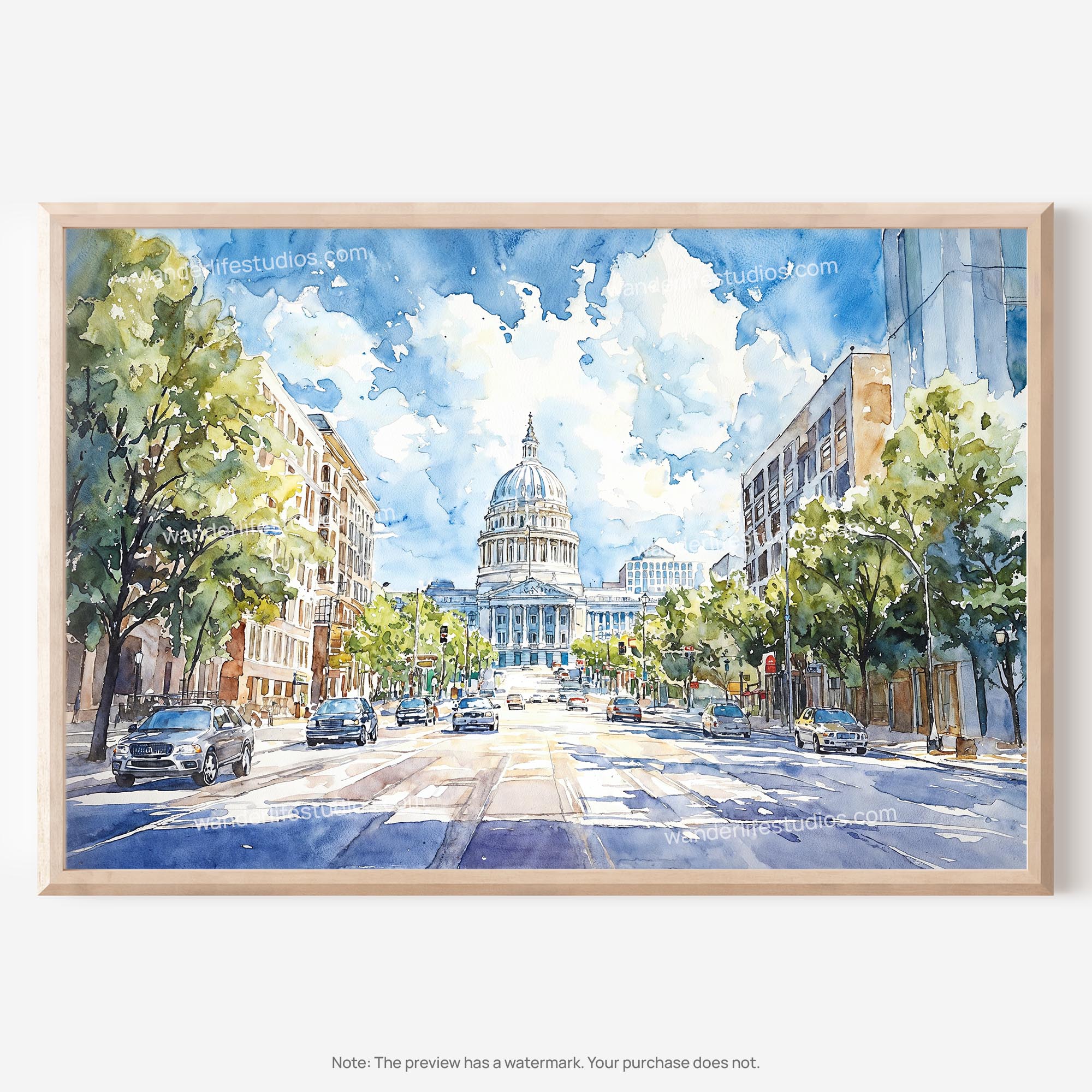 Madison Watercolor Art Print – Captivating Cityscape Digital Download