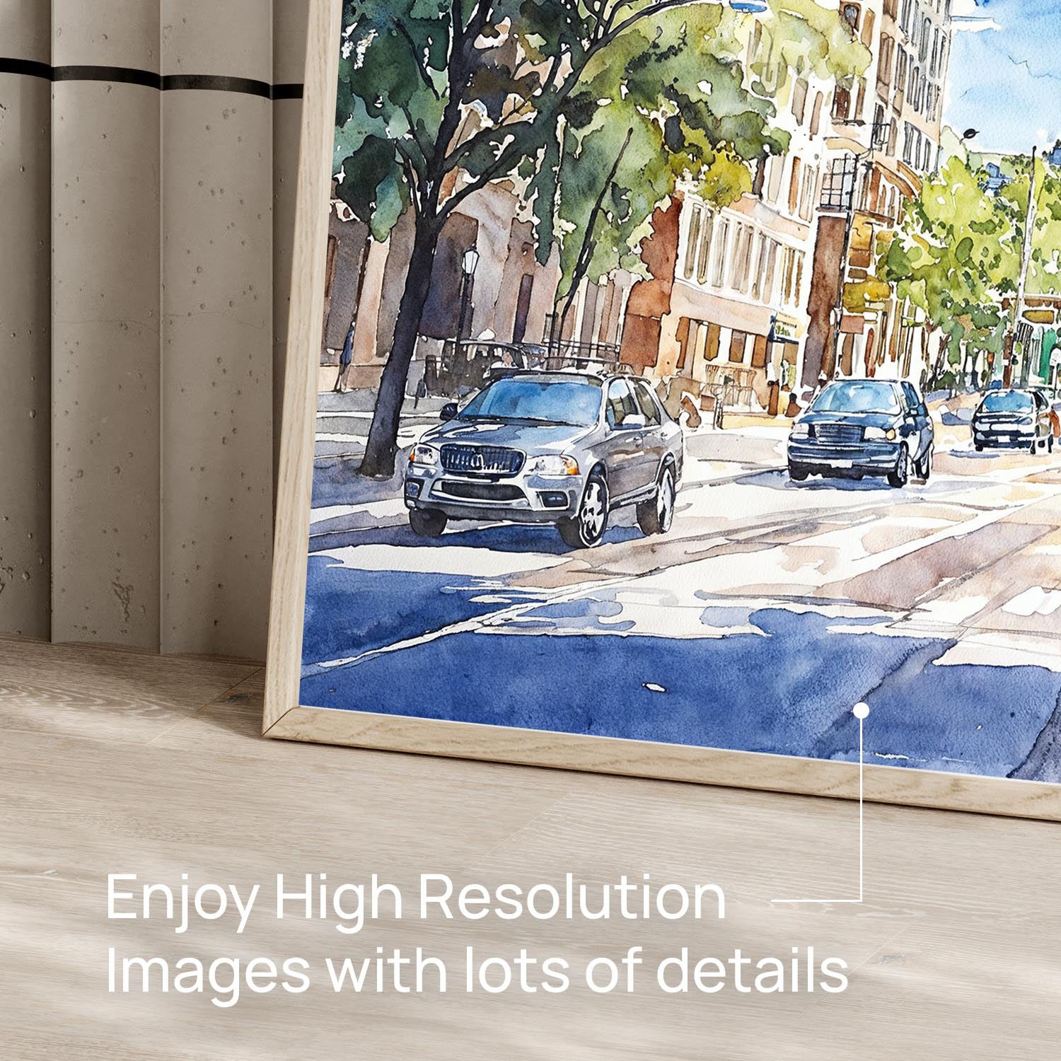 Experience the charm of Madison with this watercolor cityscape digital download wall art. Featuring vibrant colors and intricate details, it’s easy to print and display in your favorite space instantly.