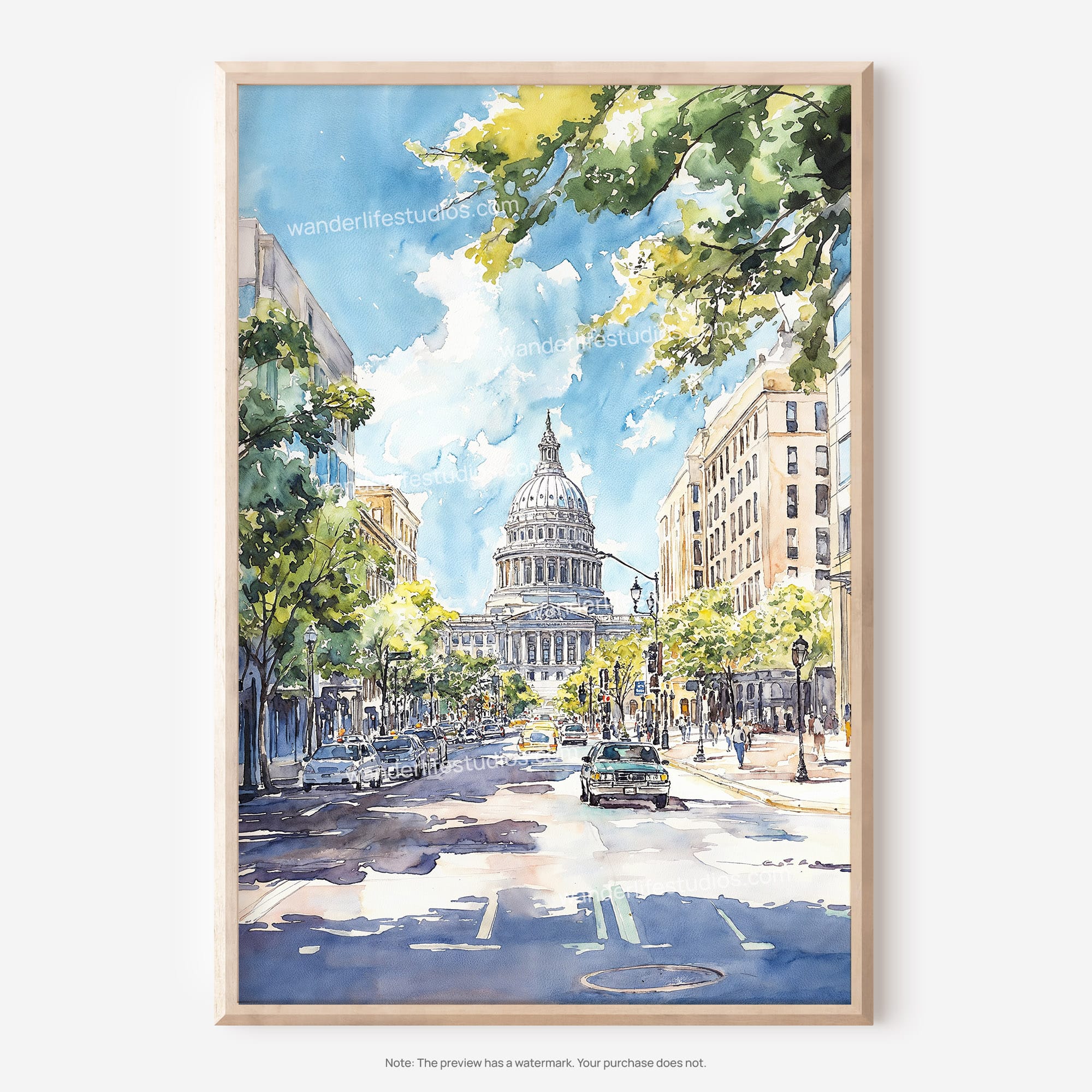 Madison Wisconsin State Capitol Building Watercolor Art – Digital Download