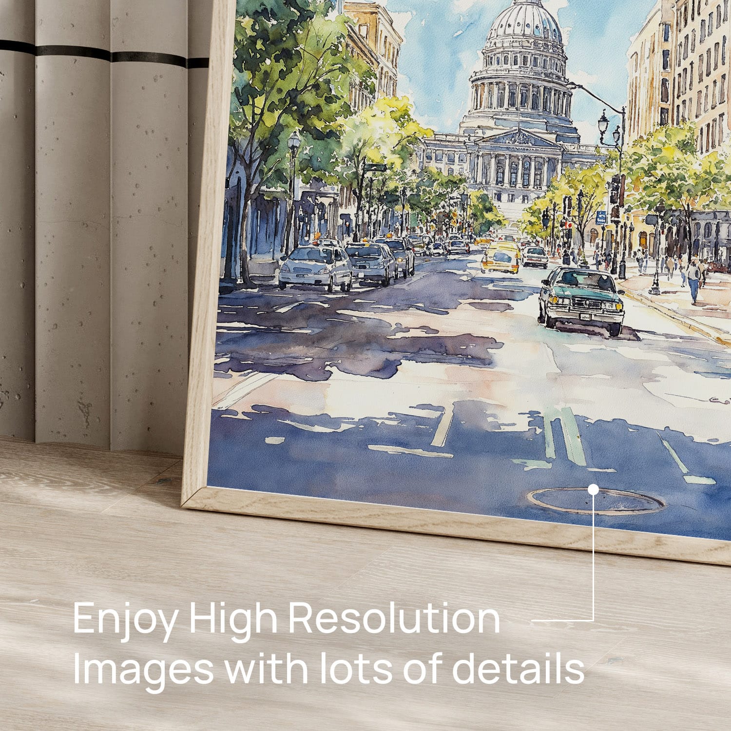Enhance your space with this digital download wall art featuring Madison’s State Capitol Building. The vibrant watercolor design captures the essence of the city, allowing for easy printing in any format you choose.