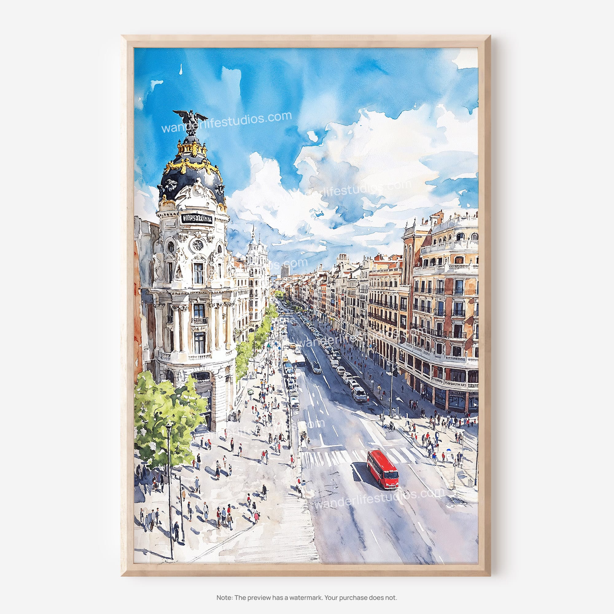 Madrid Watercolor Art – Cityscape Digital Download Wall Art