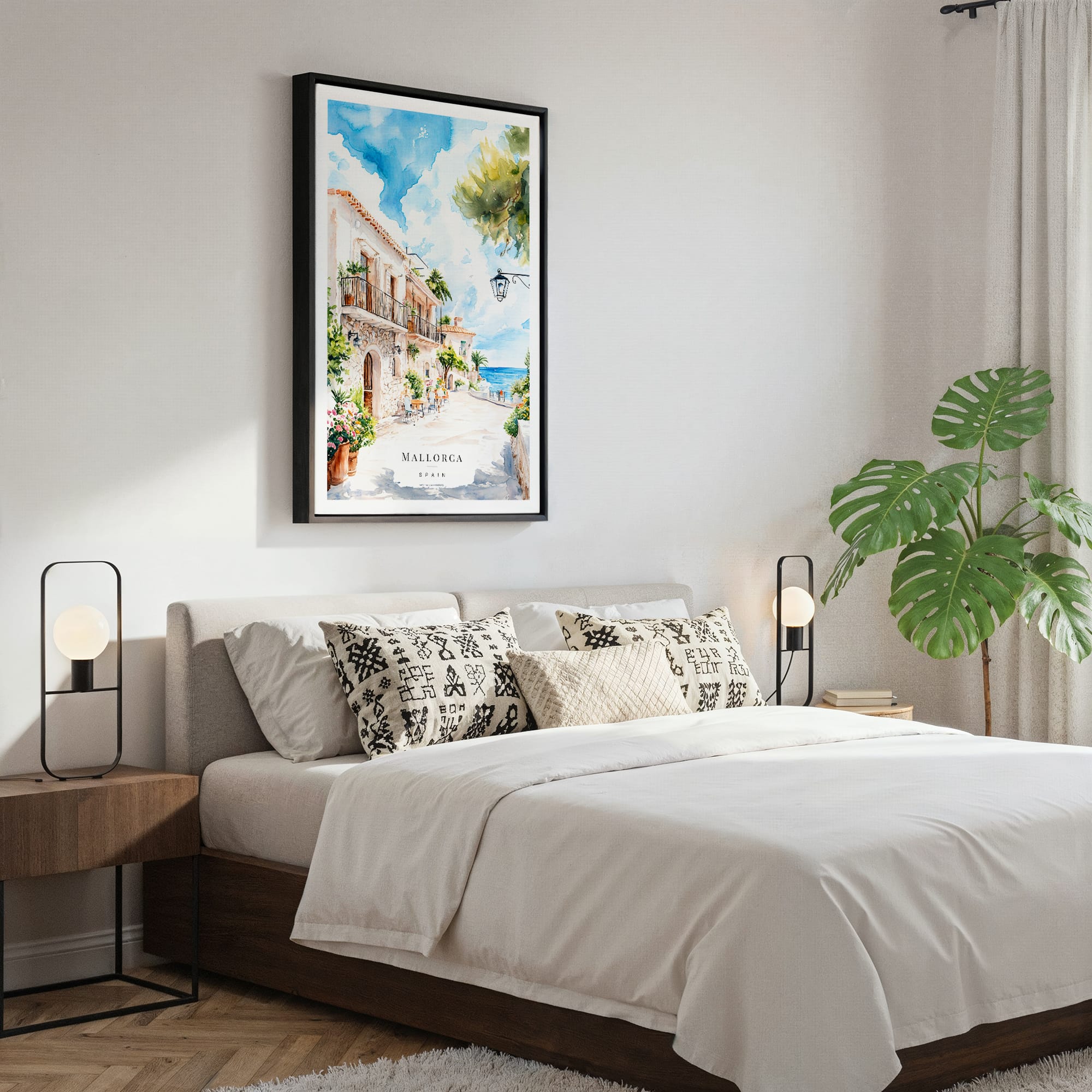 Capture the charm of Mallorca with this watercolor canvas art print. Its coastal hues of blue and green bring a cheerful vibe to any space, making it an inviting addition to living rooms, bedrooms, or a thoughtful gift for home updates.