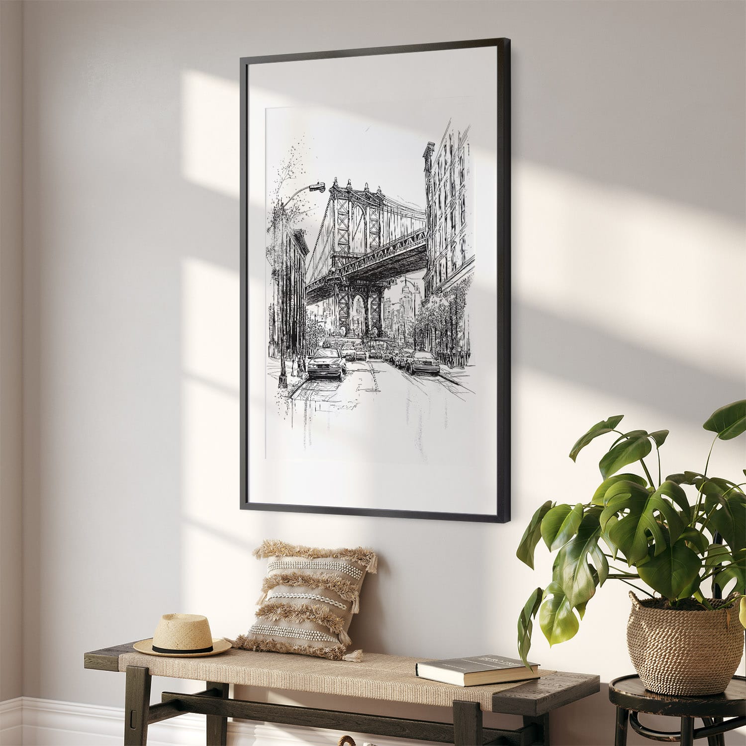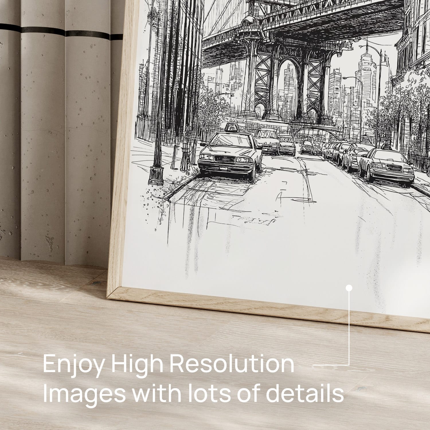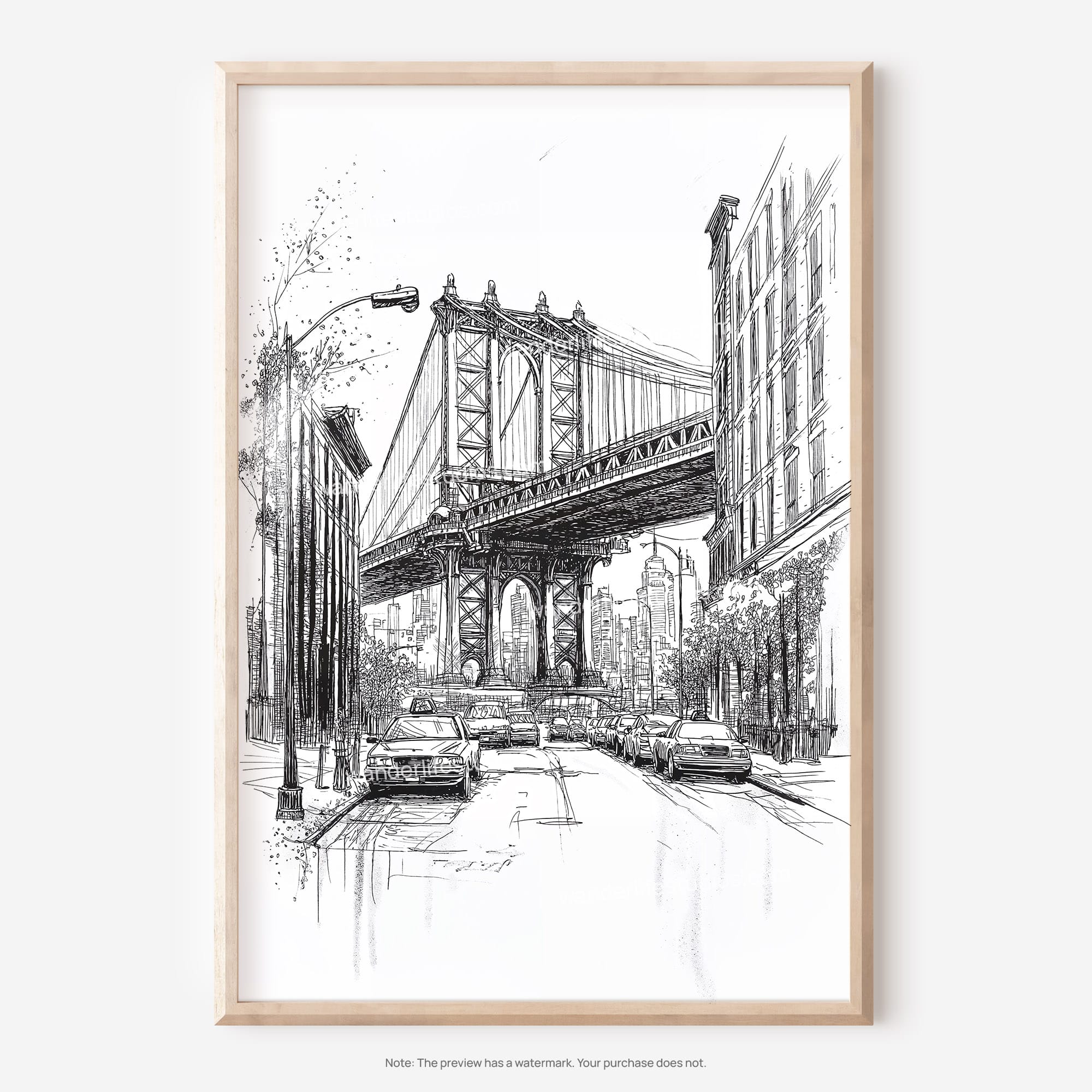 This artwork showcases the iconic Manhattan Bridge in a beautiful pencil drawing style, evoking the vibrant energy of New York City. It’s ideal for modern spaces, bringing a touch of urban charm to your living room, bedroom, or office. Delivered as a high-resolution digital file, you can easily print it at home or at a local print shop. Enjoy instant access to refresh your walls or create a unique atmosphere in your space.
