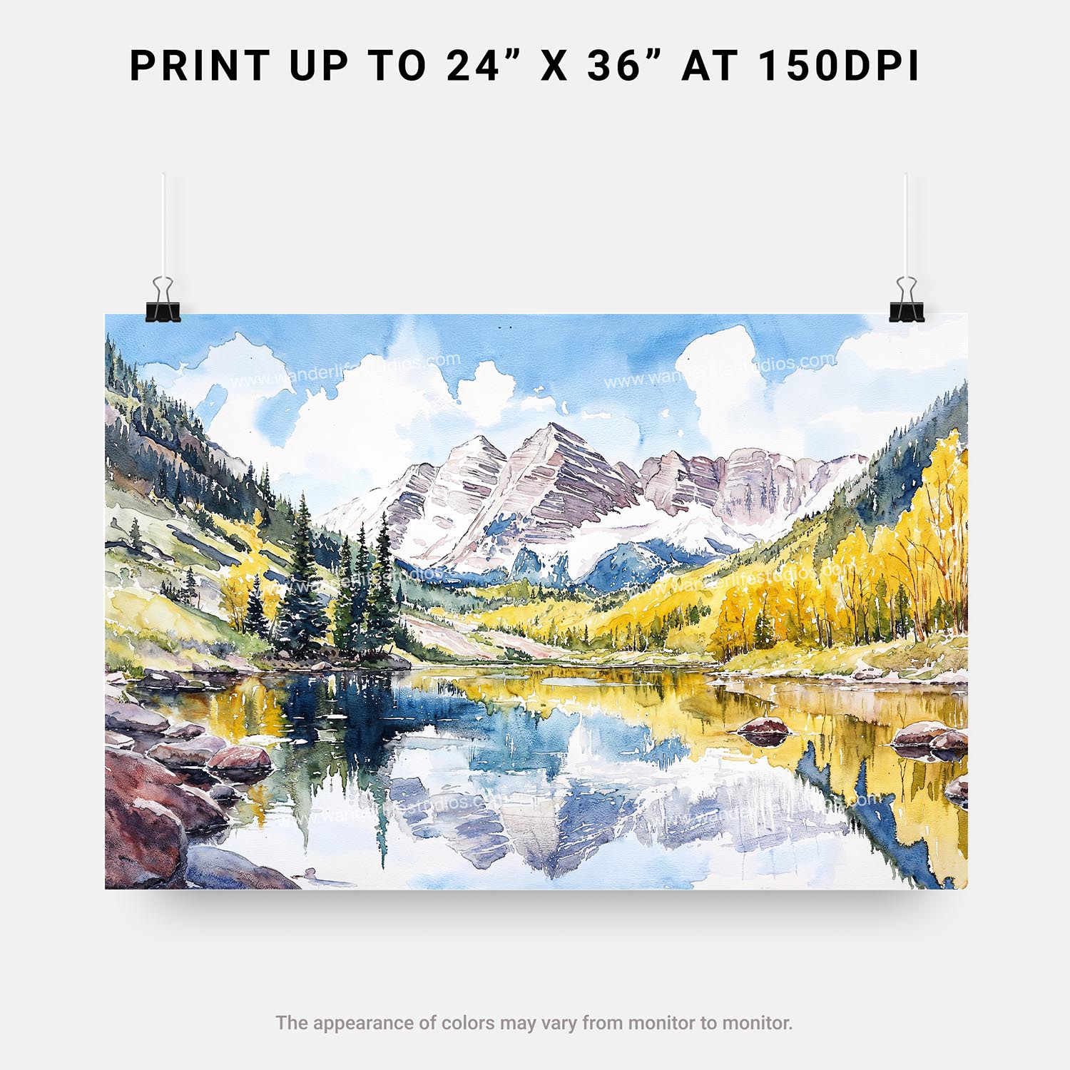 Maroon Bells Watercolor Art – Digital Download of Colorado’s Majestic Mountains