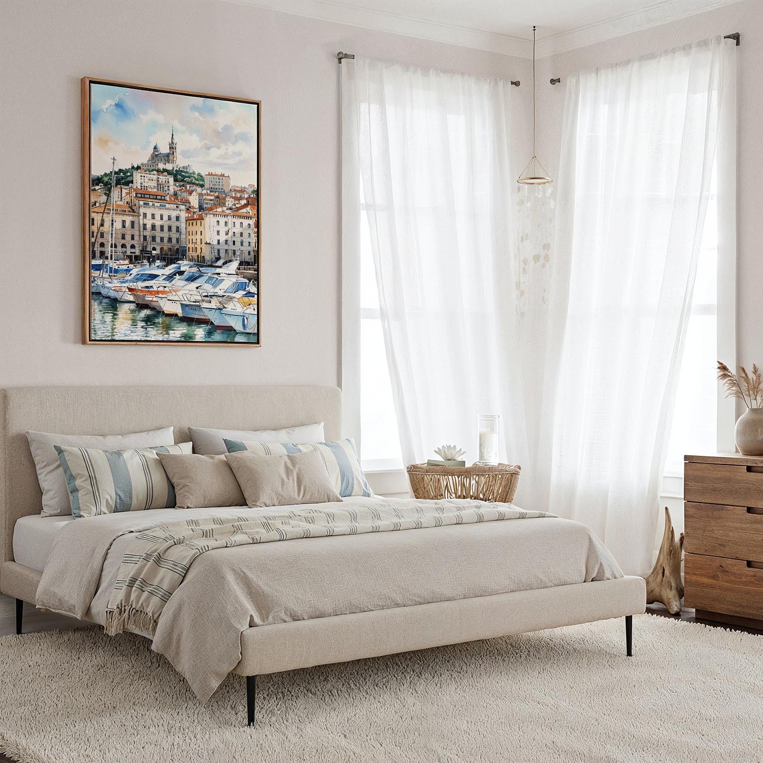 Marseilles Watercolor Canvas Print – Coastal Cityscape Wall Art