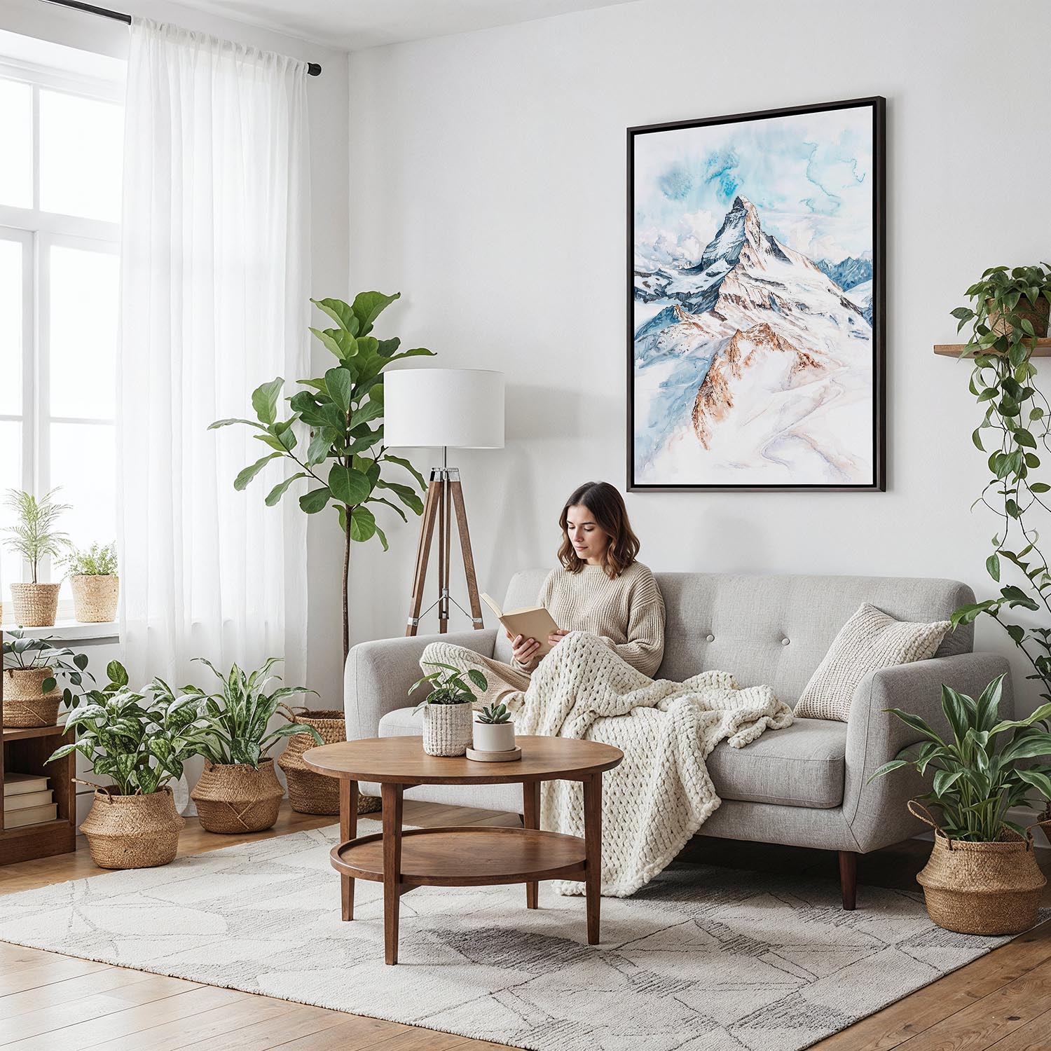 Elevate your space with this Matterhorn canvas print, featuring soft watercolor tones of the iconic mountain. It’s ready to hang and perfect for living rooms, offices, or bedrooms.