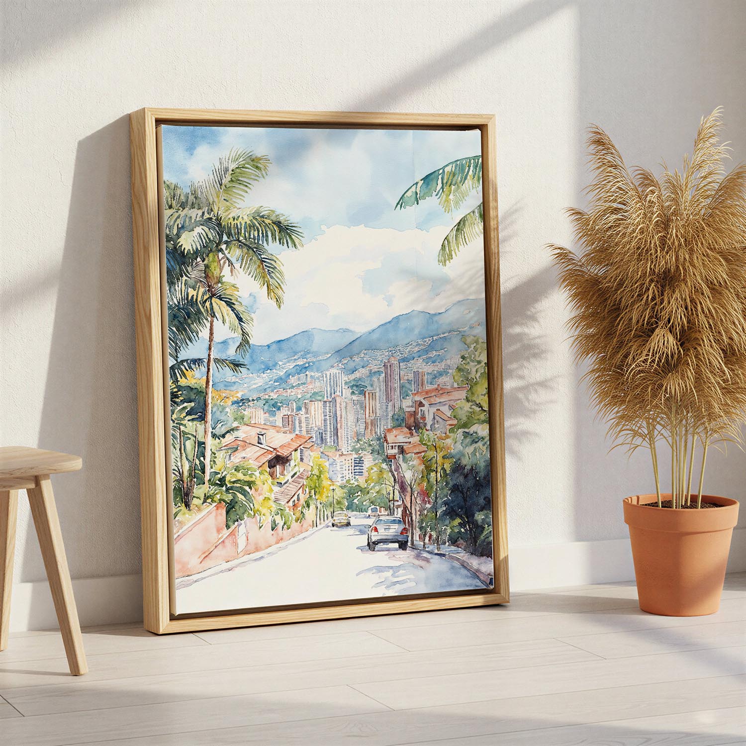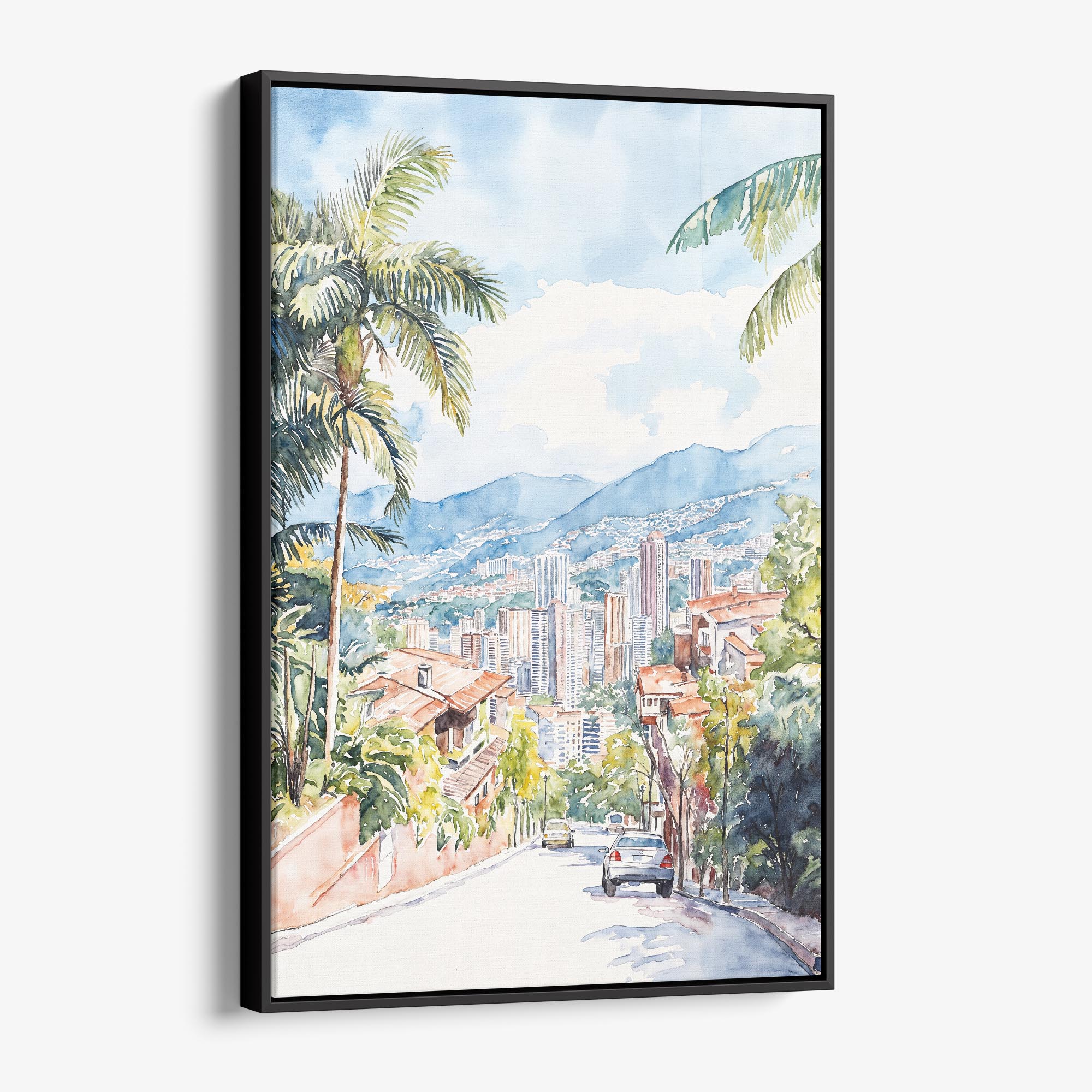 Medellin Skyline Watercolor Canvas Print – Urban Landscape Art