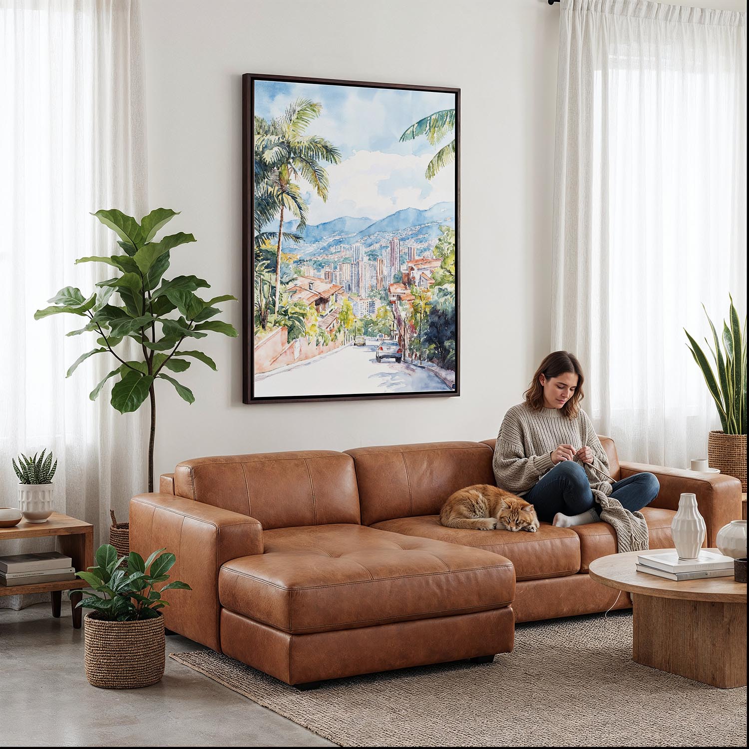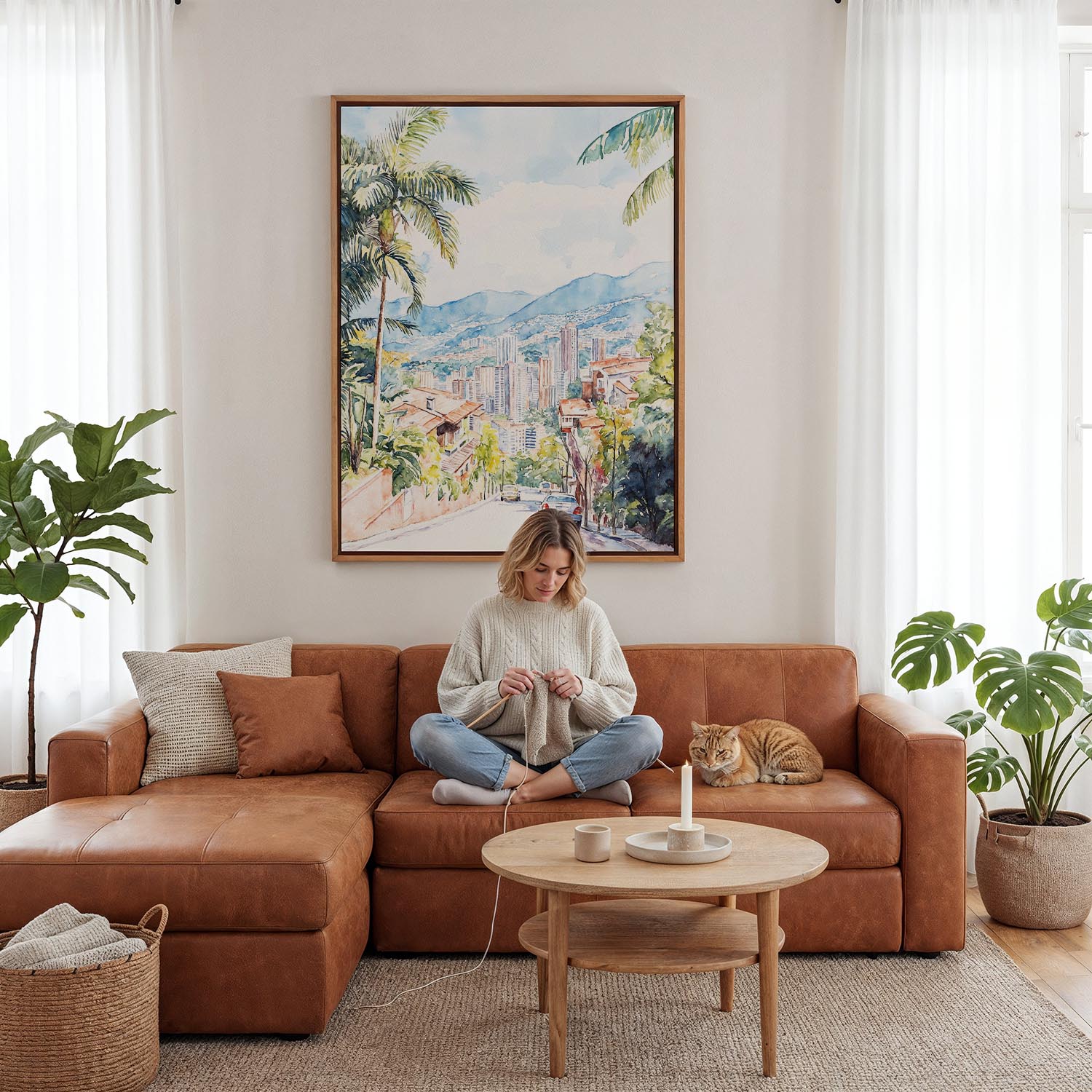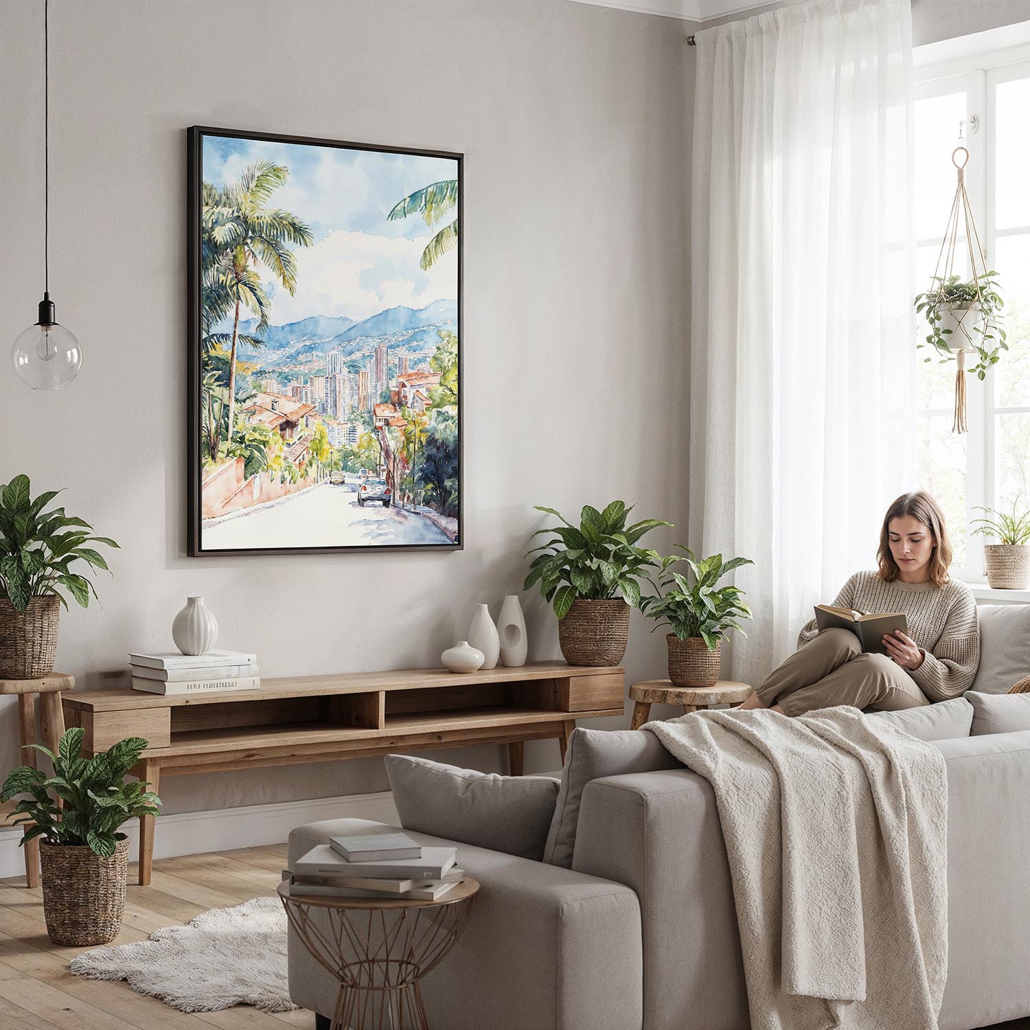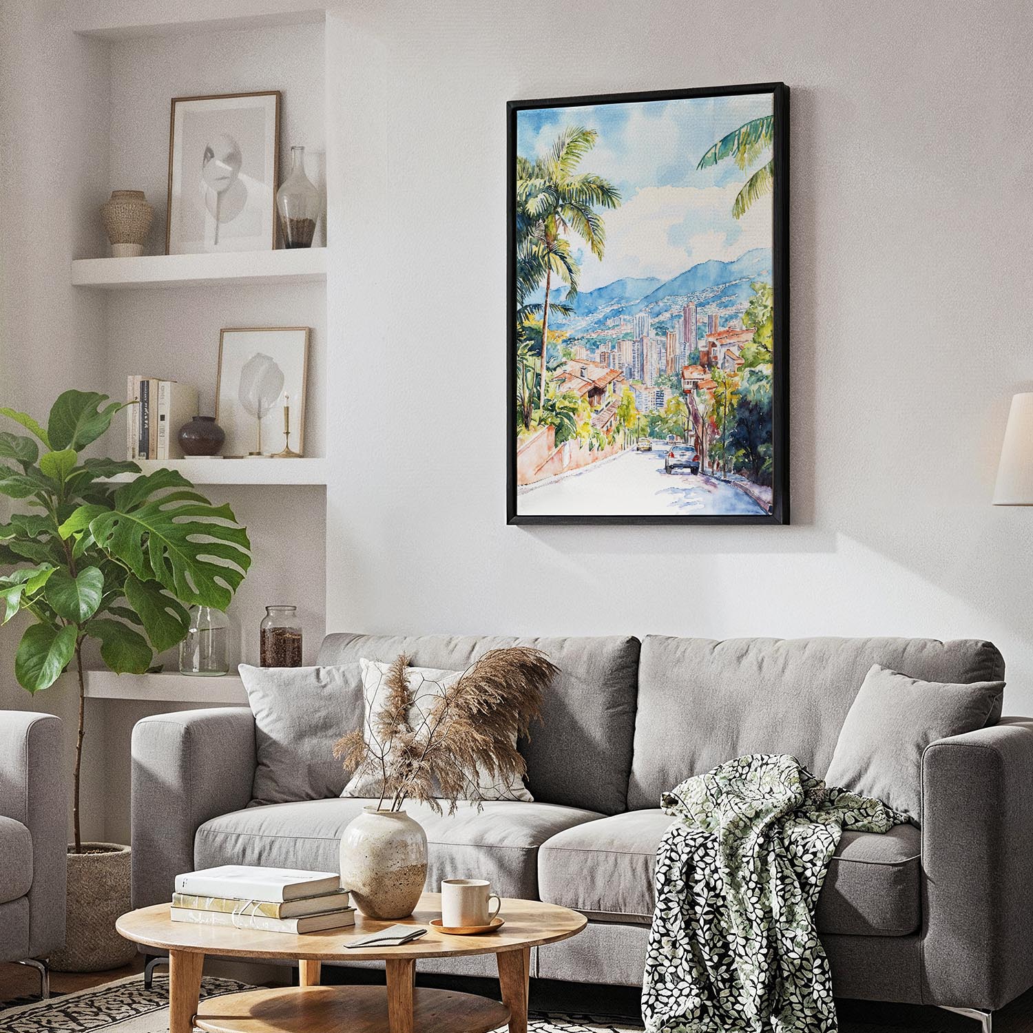 Bring the lively energy of Medellin to your space with this canvas print. Perfect for your living room, bedroom, or office, it offers a vibrant view of the skyline framed by lush greenery.