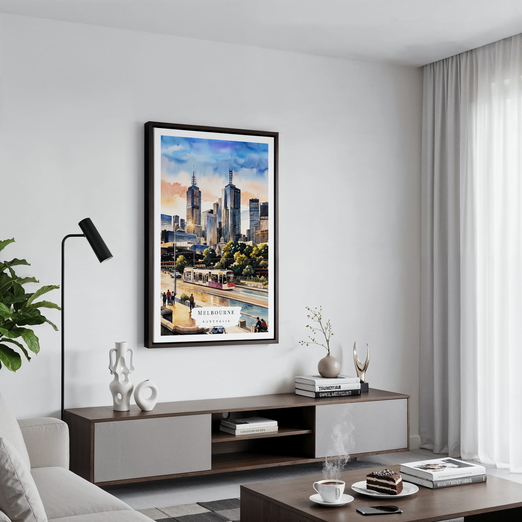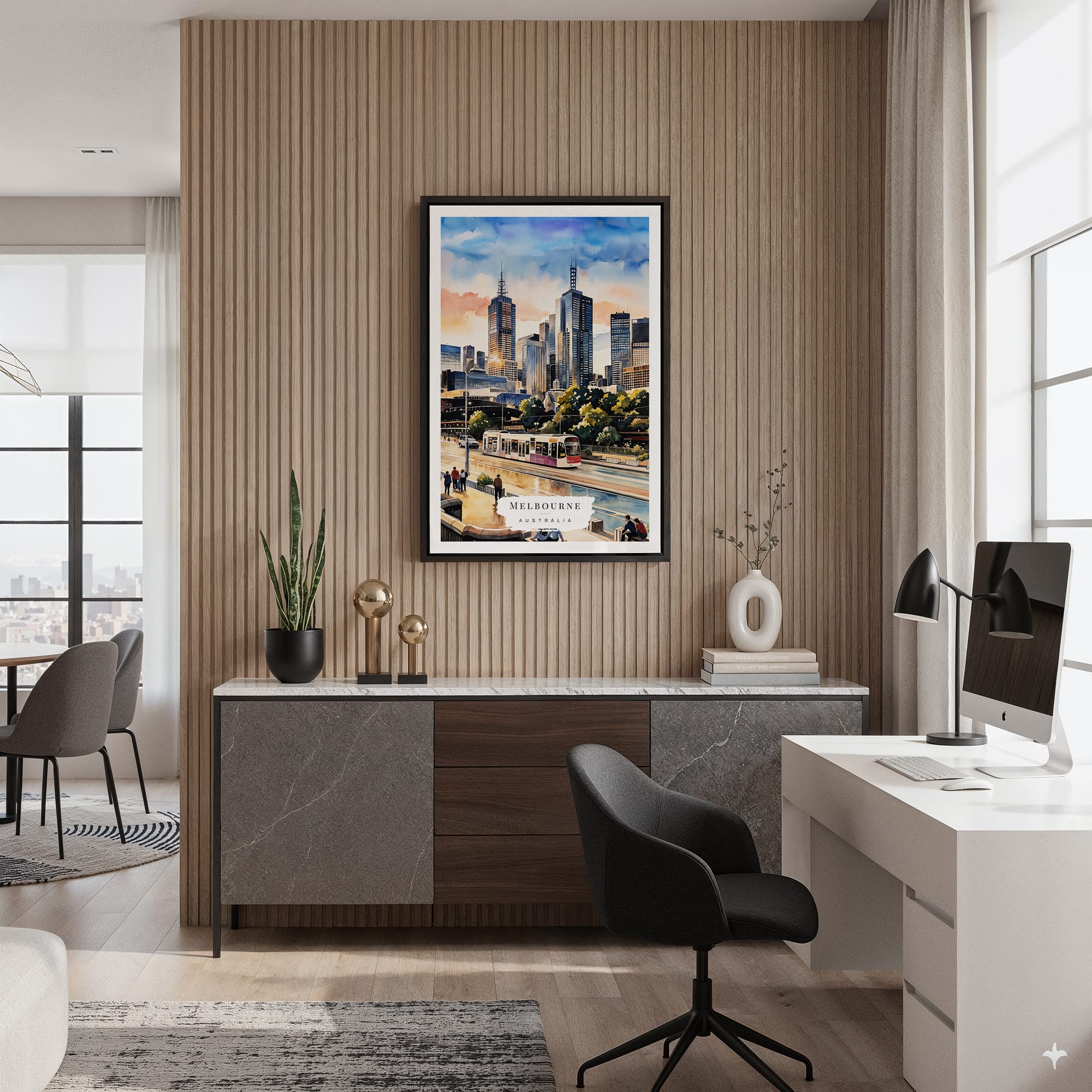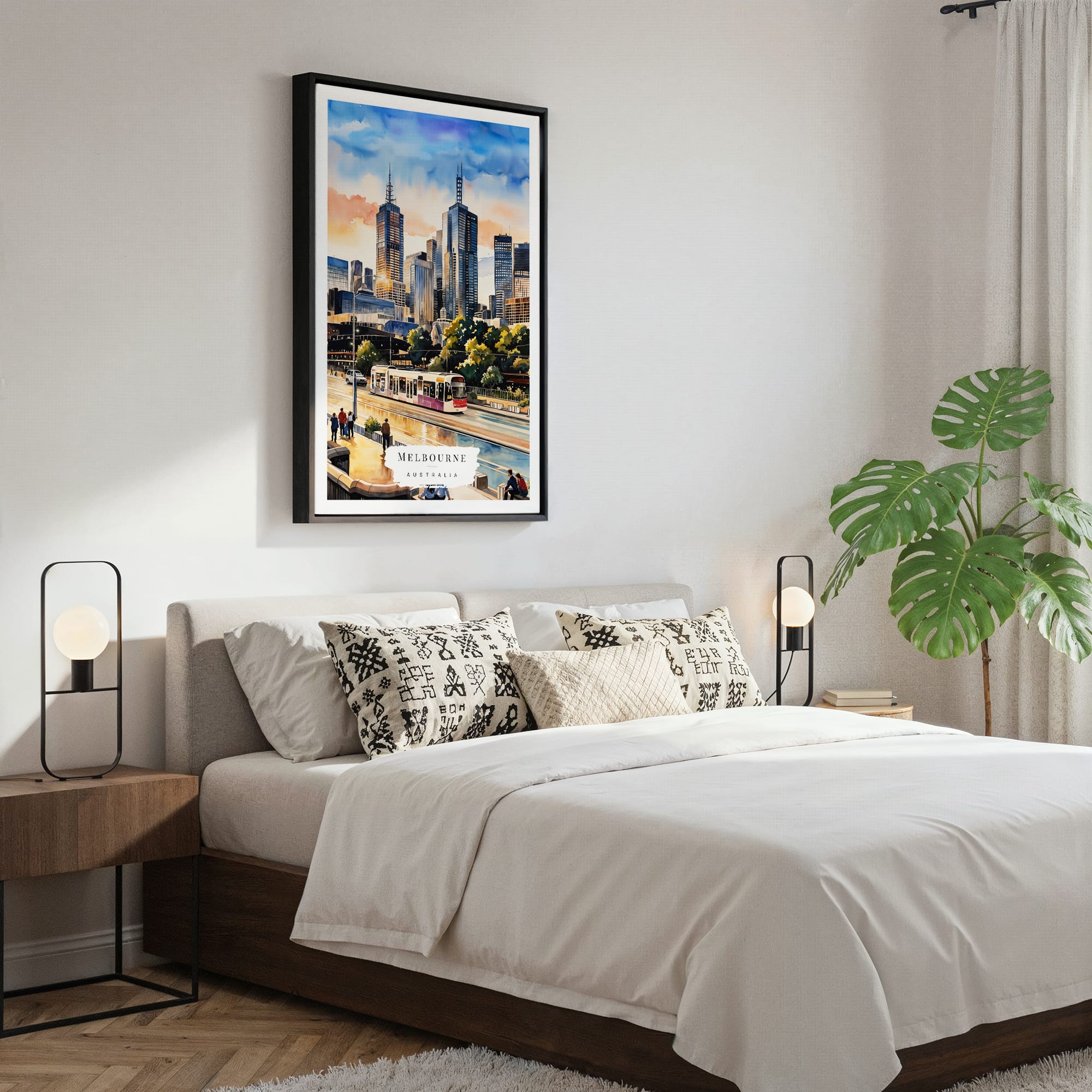 This Melbourne watercolor canvas art print features vibrant city hues and soft sunset tones, adding a lively yet relaxed atmosphere to your space. It’s a wonderful addition for your home or a thoughtful gift for anyone who loves urban life.