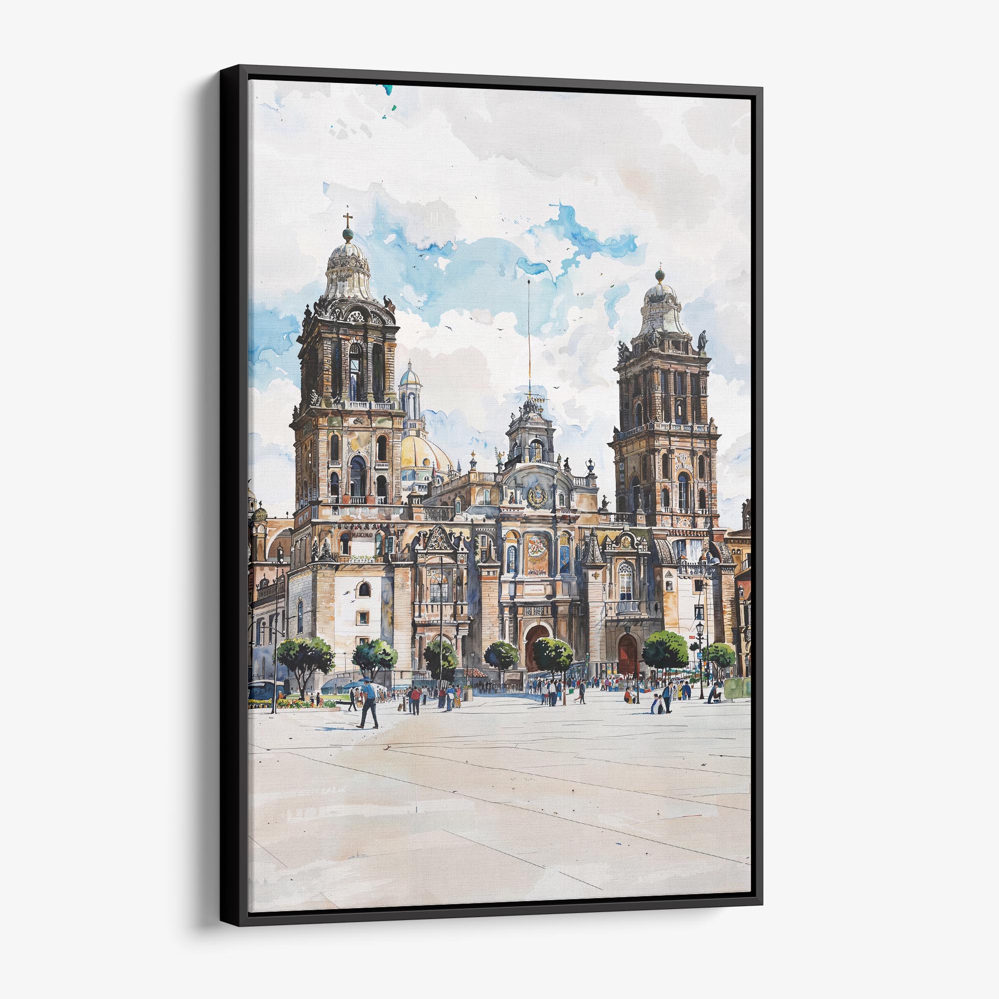 Bring the essence of Mexico City to your space with this watercolor canvas print of the Metropolitan Cathedral. Perfectly sized for living rooms, offices, or hallways, it comes ready to hang, adding character to any wall.