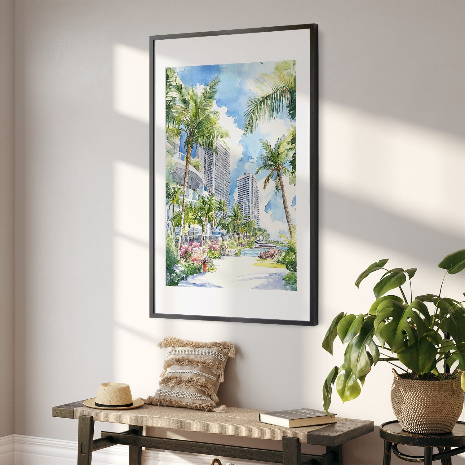 Miami Beach Watercolor Art – Digital Download of Tropical Coastal Scene