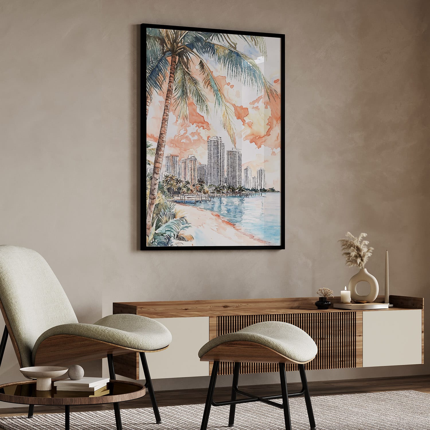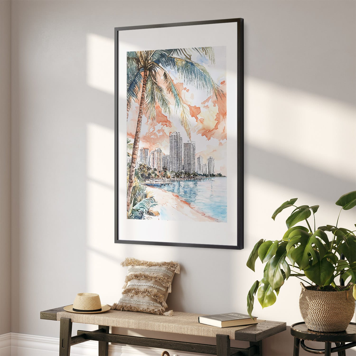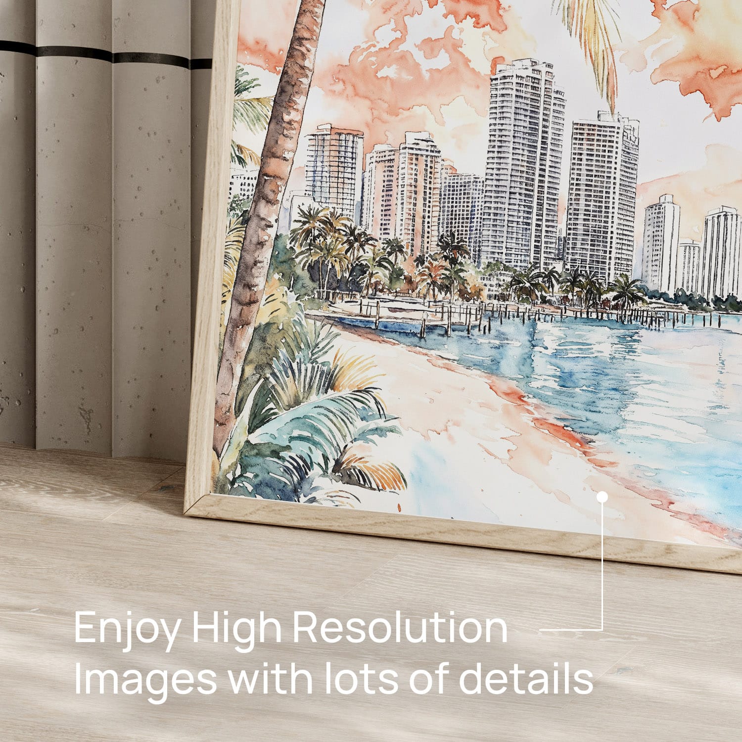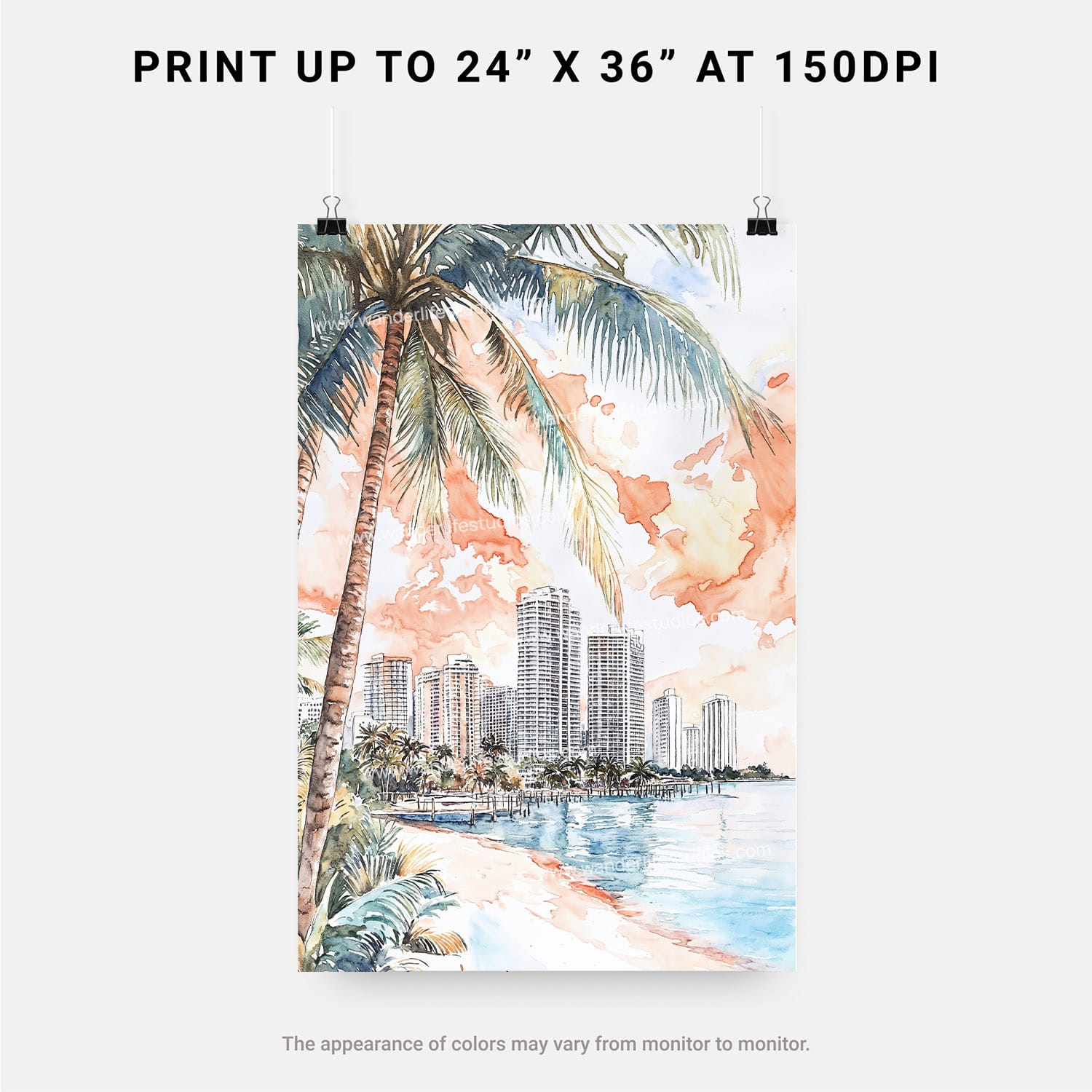 Miami Florida Sunset Watercolor Digital Download Wall Art