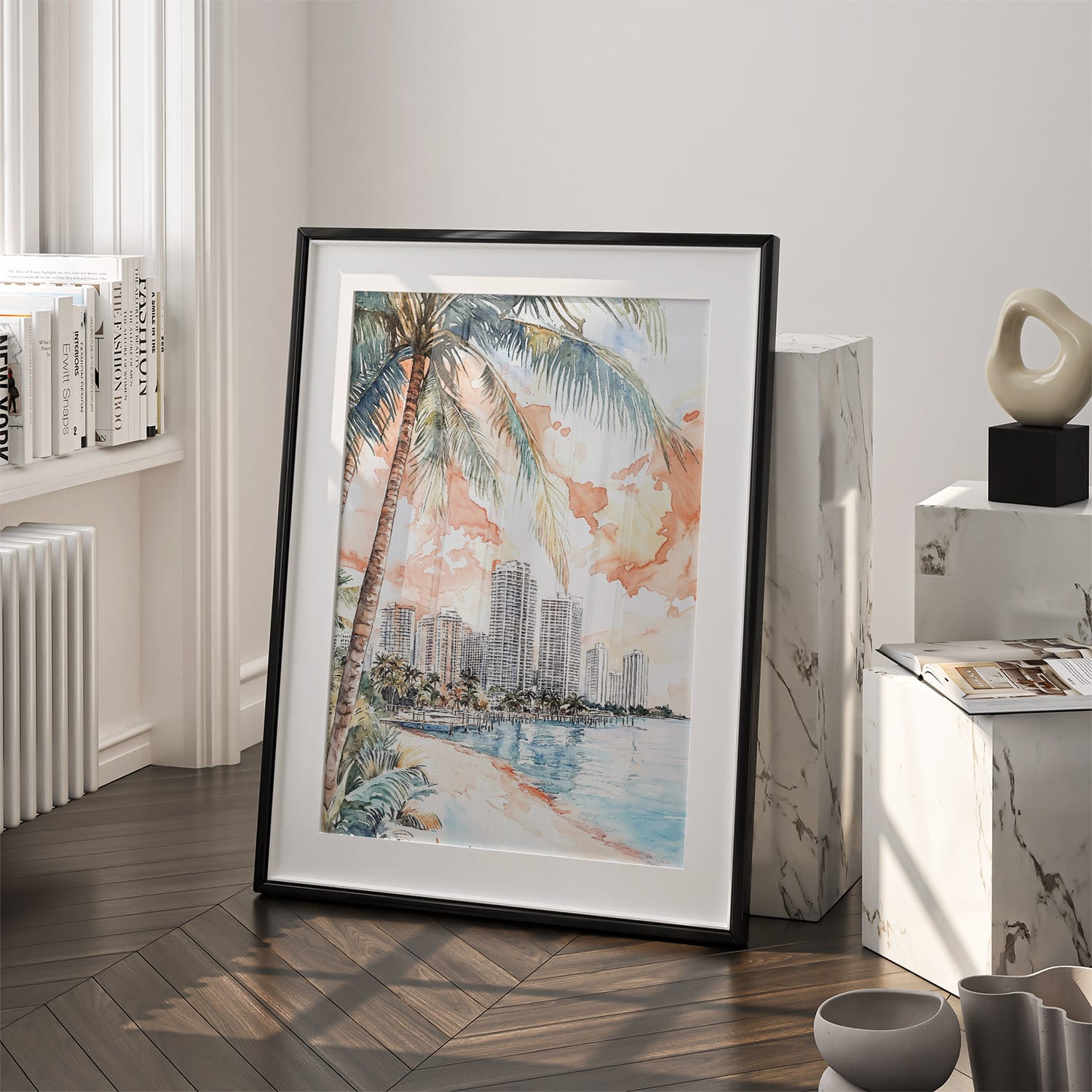 Miami Florida Sunset Watercolor Art – Digital Download Beach Wall Art