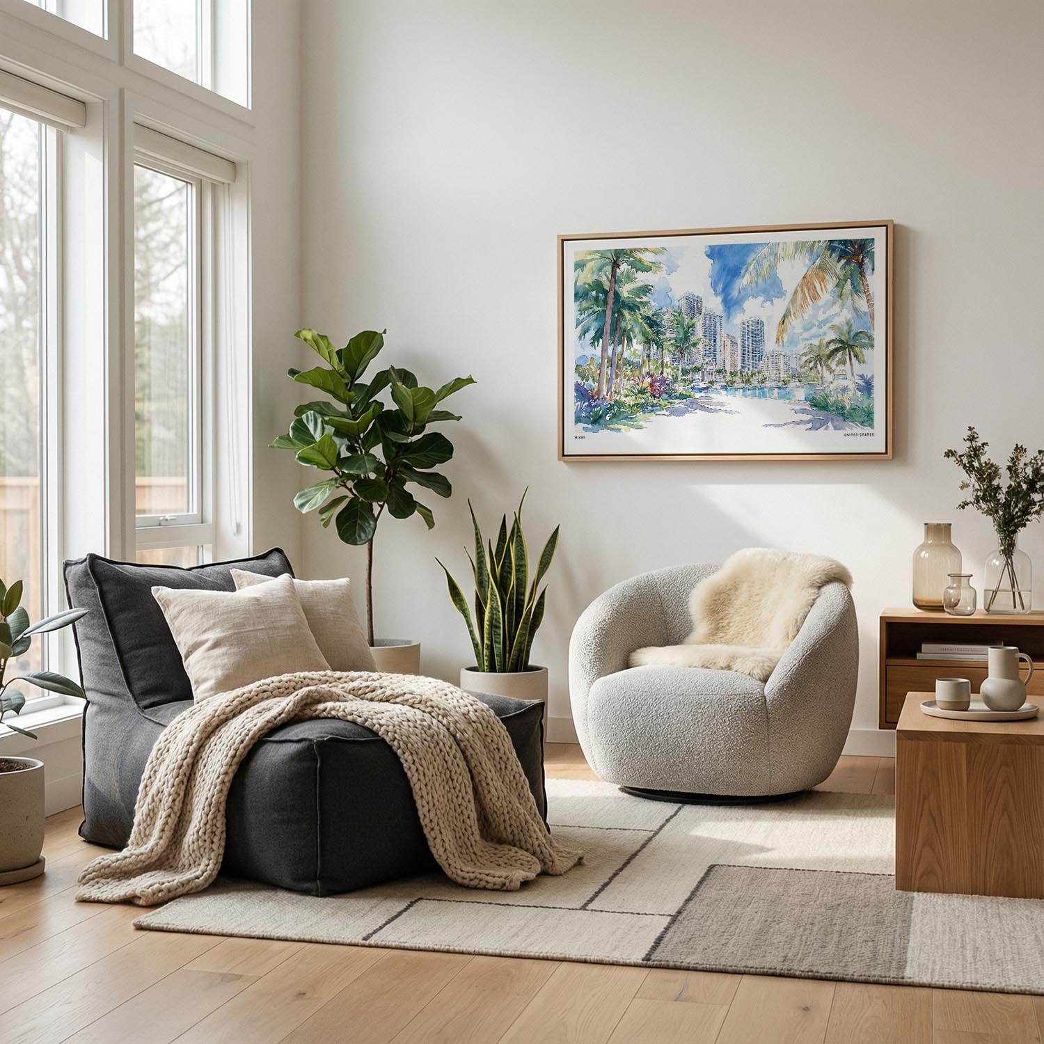 Transform your space with this Miami Gardens canvas print. Featuring vibrant palm trees and cityscapes, it’s ready to hang in any living room, bedroom, or office.