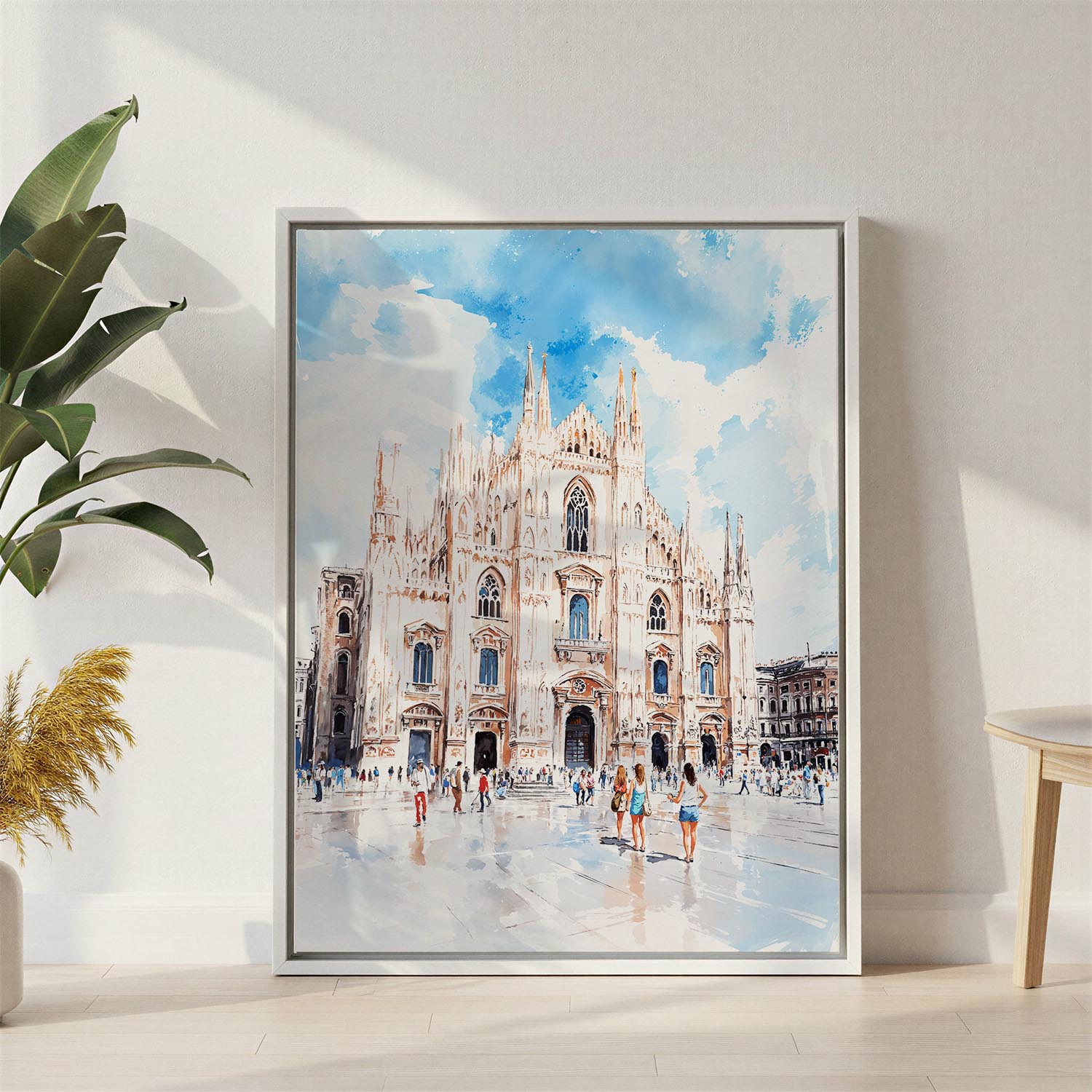 This canvas print captures the charm of Milano, displaying its iconic architecture in soft watercolor tones. Perfect for adding a touch of Italy to your living room, office, or any space that deserves elegance.