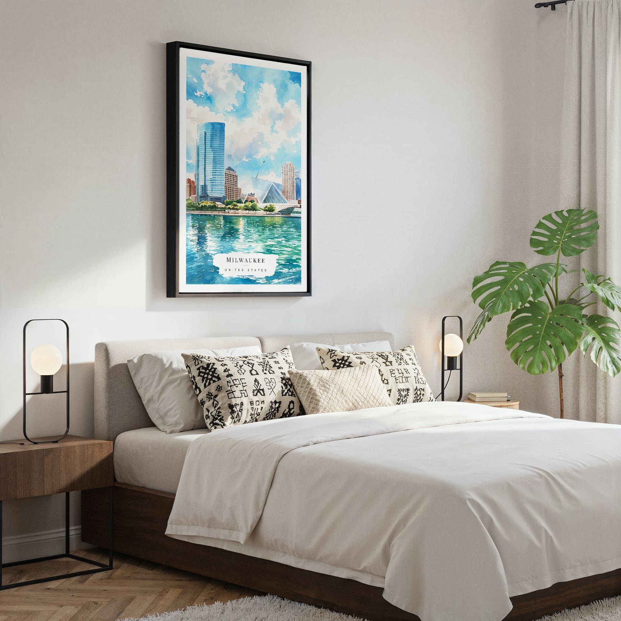 Milwaukee Skyline Watercolor Canvas Print – Vibrant Cityscape Wall Art