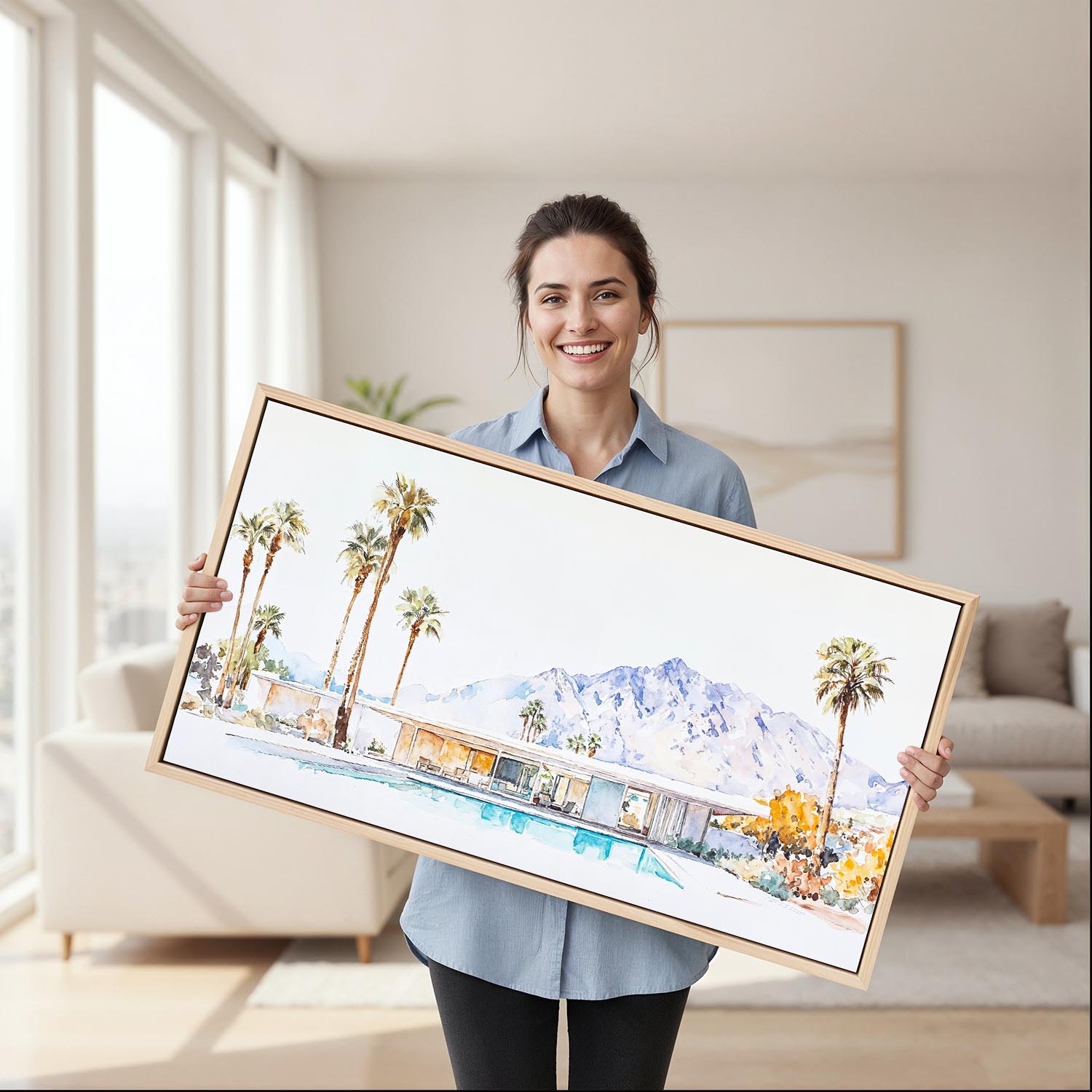 Minimal Palm Springs Watercolor Canvas Print – Elegant Panoramic Wall Art