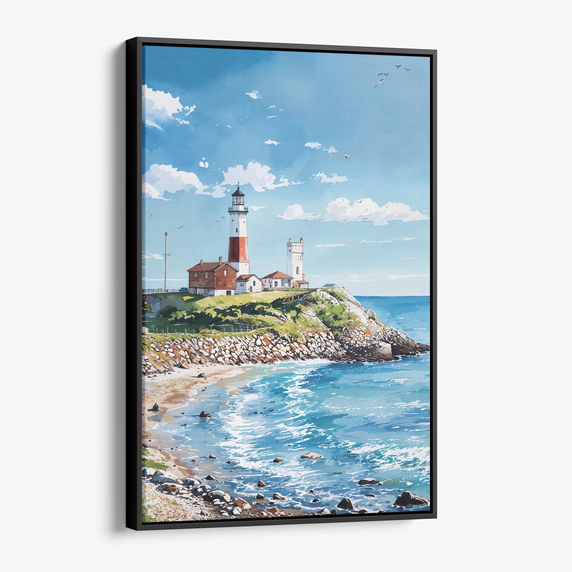 Montauk Lighthouse Canvas Print – Watercolor Coastal Wall Art