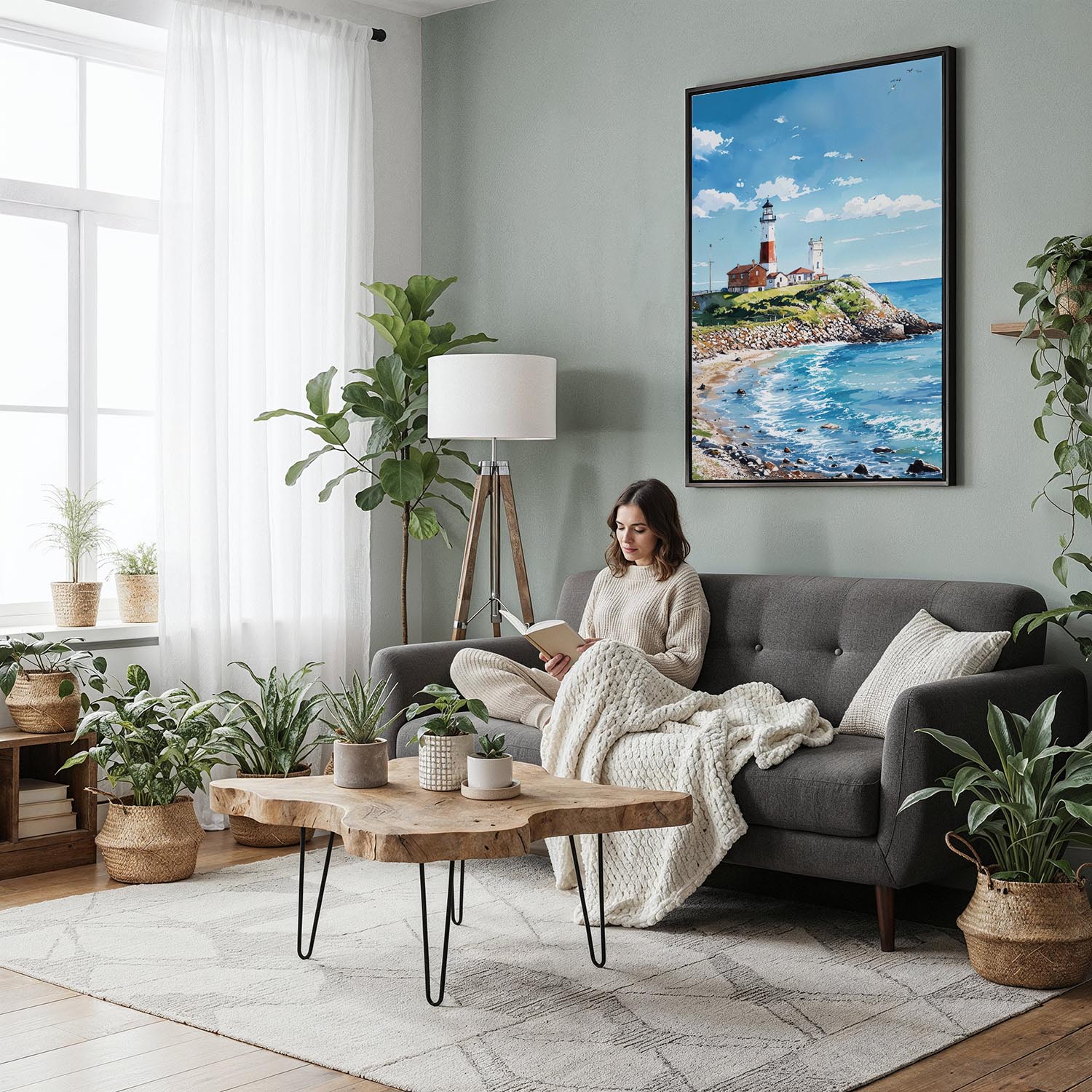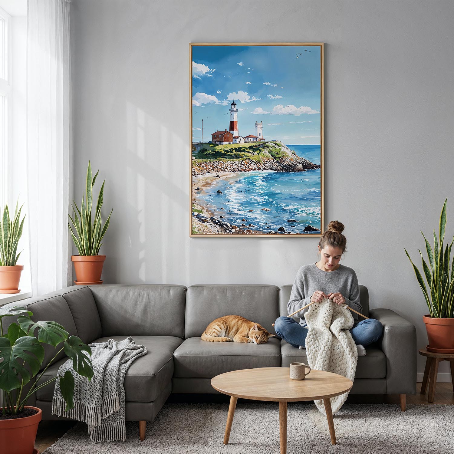 This canvas print is made of high-quality materials, featuring hand-stretched canvas on solid wood stretcher bars and fade-resistant inks. It comes ready to hang in various finishes, making it perfect for display in living rooms, bedrooms, or coastal-themed offices.