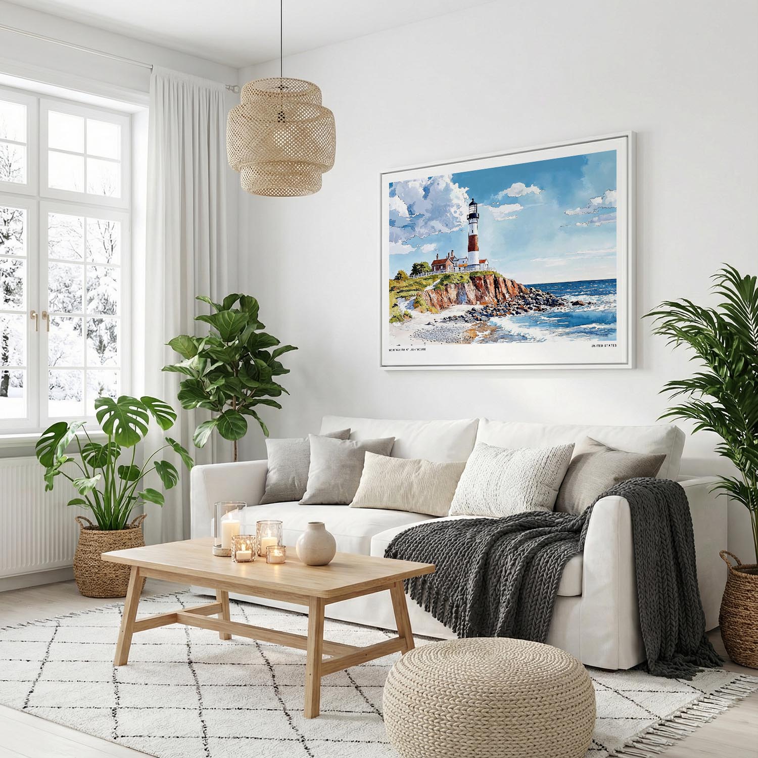 This canvas print features the iconic Montauk Point Lighthouse, capturing its charm against a vibrant coastal backdrop. Ready to hang, it’s a delightful addition for any living room, bedroom, or office.