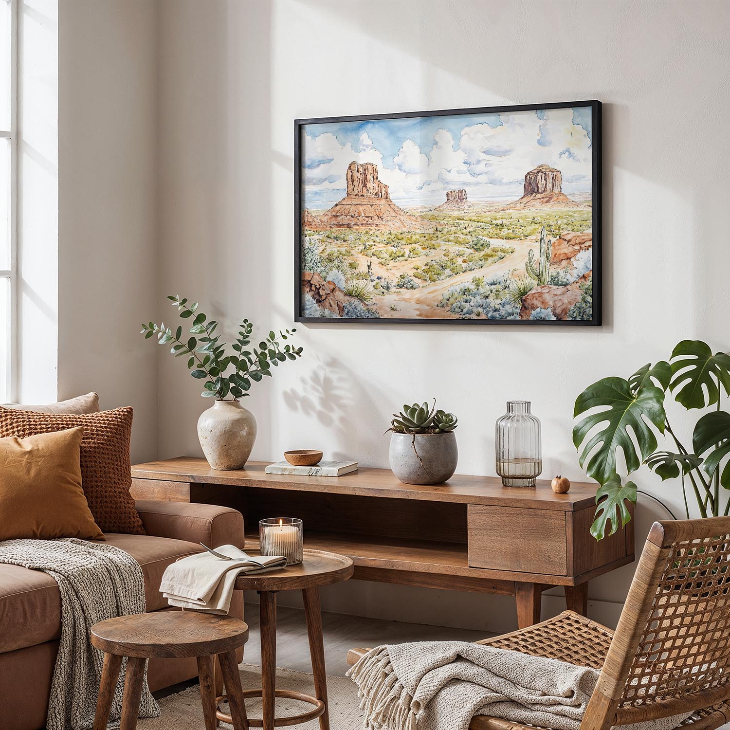 Brighten your space with this Monument Valley digital download wall art. Featuring warm desert hues and soft watercolor style, it’s ready for instant printing, bringing a taste of the southwest into your home.