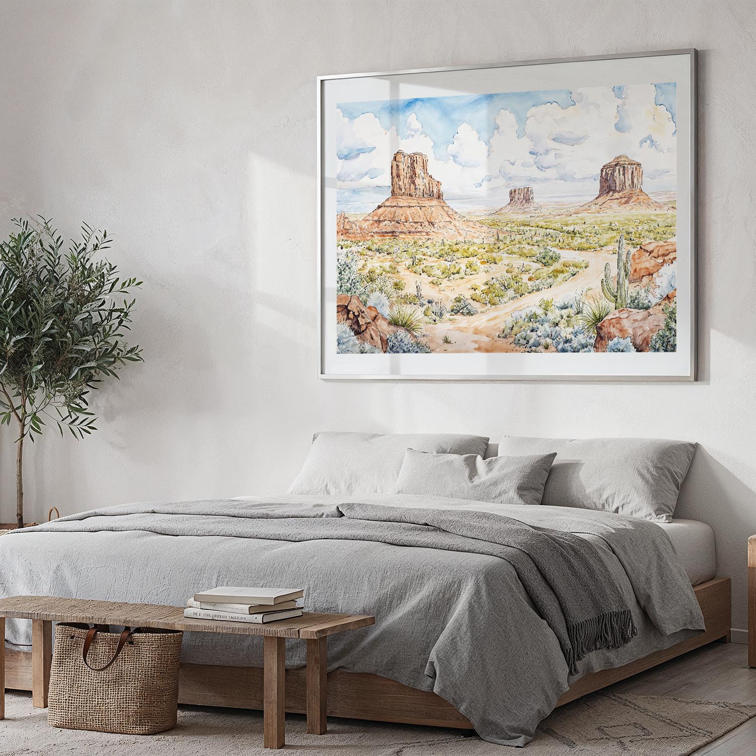 This artwork captures the iconic landscape of Monument Valley, showcasing its striking rock formations and vibrant desert scenery. The soothing tones and gentle brush strokes evoke a sense of wanderlust, perfect for recalling adventures in the great outdoors. You will receive a high-resolution image file, making it simple to print it at home or a local print shop. Ideal for living rooms, bedrooms, or offices, this instant download lets you enjoy the beauty of nature at your convenience.