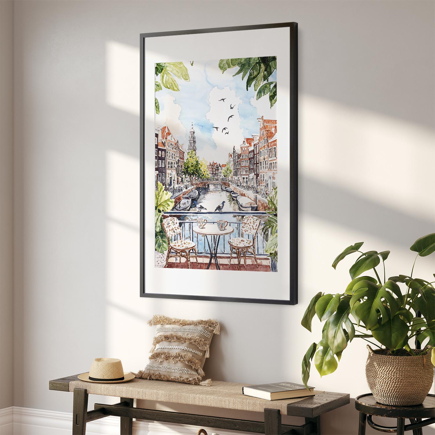 This enchanting artwork captures a lovely moment in Amsterdam, showcasing a picturesque canal scene with inviting coffee cups and charming architecture. The soft watercolor tones evoke warmth and serenity, making it a wonderful addition to your living space or a thoughtful gift for travel enthusiasts. Delivered as a high-resolution image file, this piece is easy to print at home or at a local print shop. Ideal for brightening up kitchens, dining areas, or cozy nooks, you’ll enjoy the flexibility and instant joy this download brings.