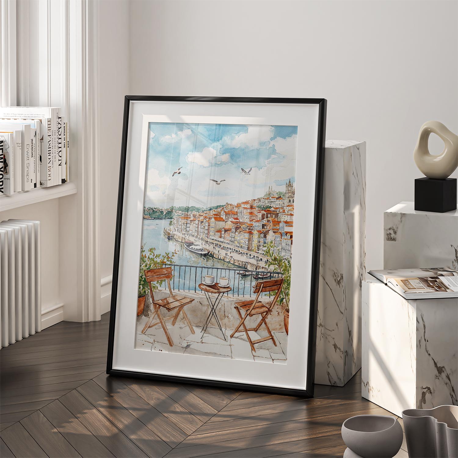 Morning Coffee in Porto Watercolor Art – Digital Download