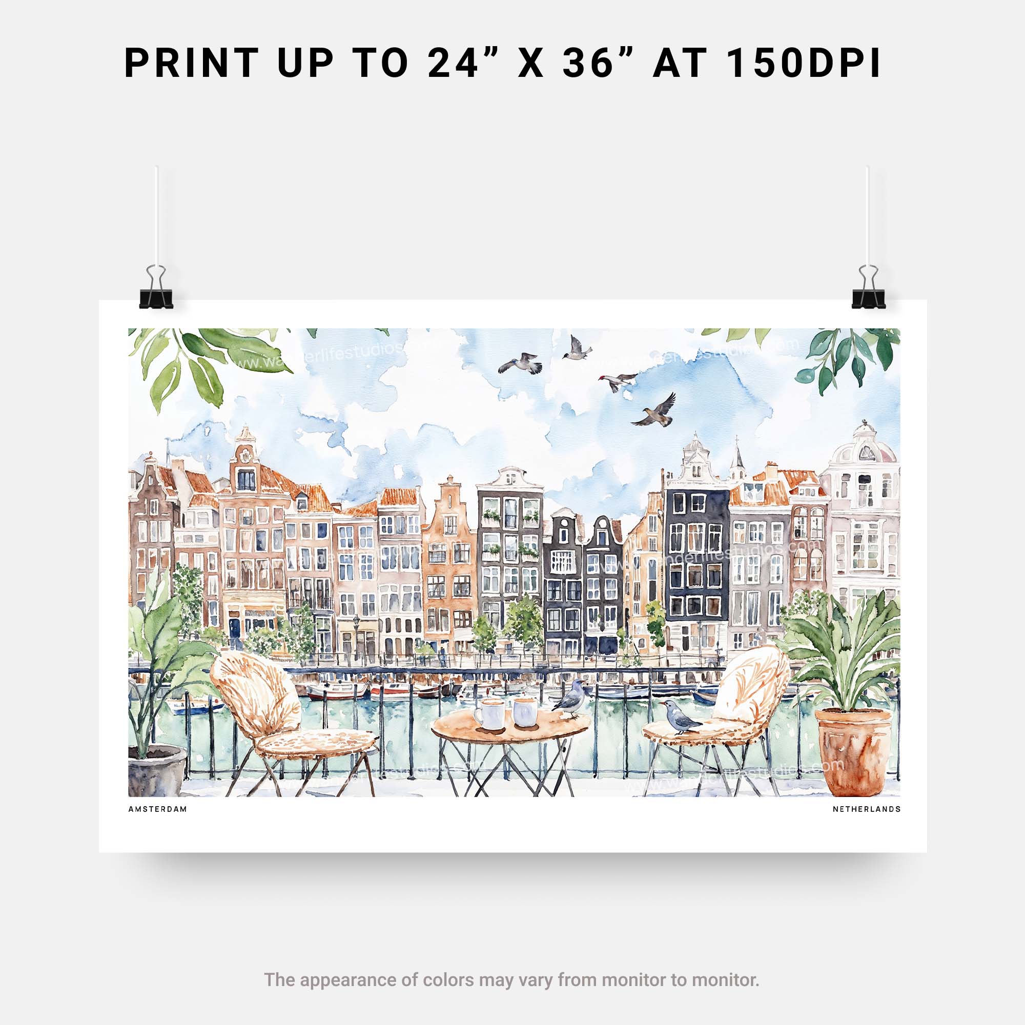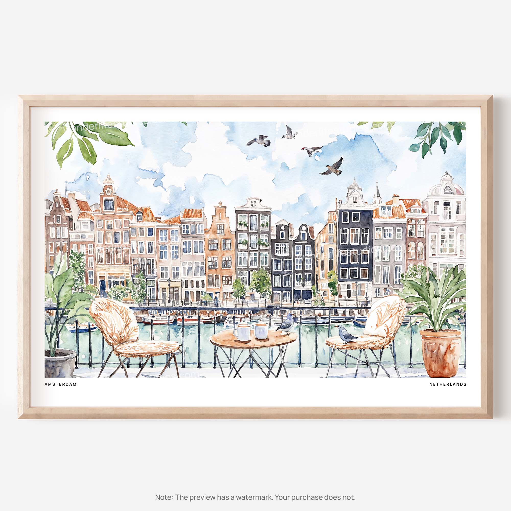 Morning in Amsterdam – Watercolor Digital Download Wall Art