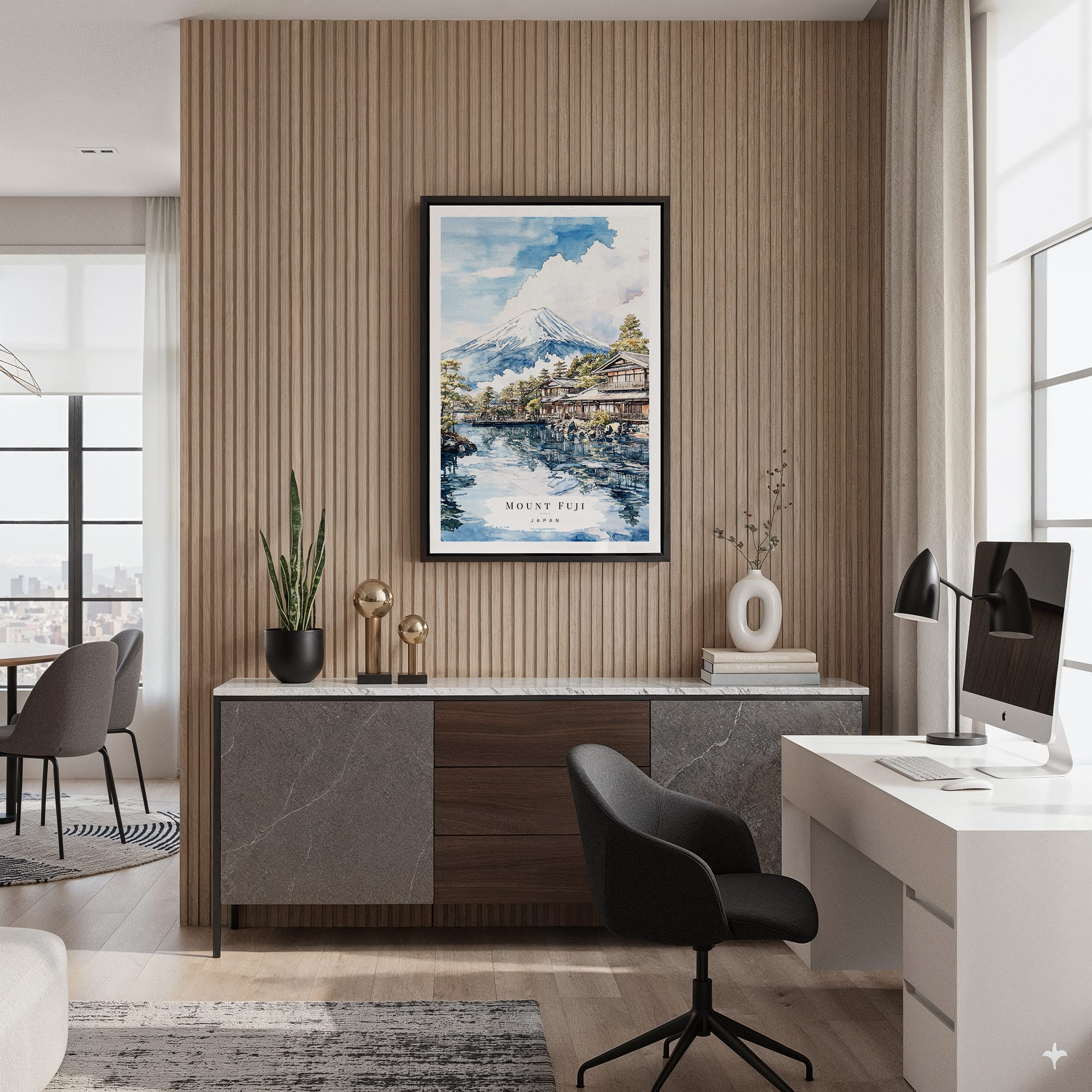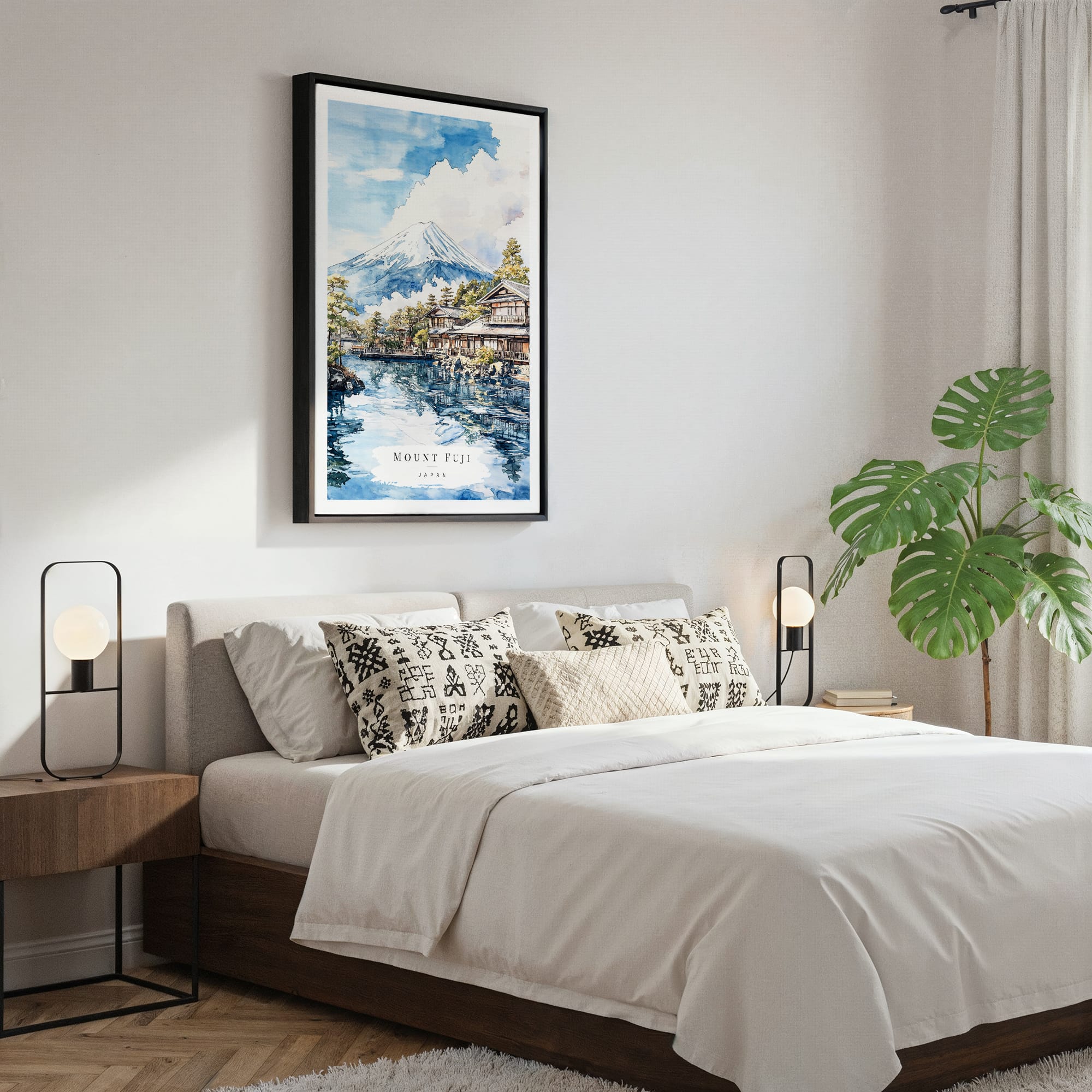 Elevate your space with this Mount Fuji canvas art print, featuring calm blue tones and serene village scenes. It’s a wonderful addition to living rooms, bedrooms, or a thoughtful gift for nature lovers.