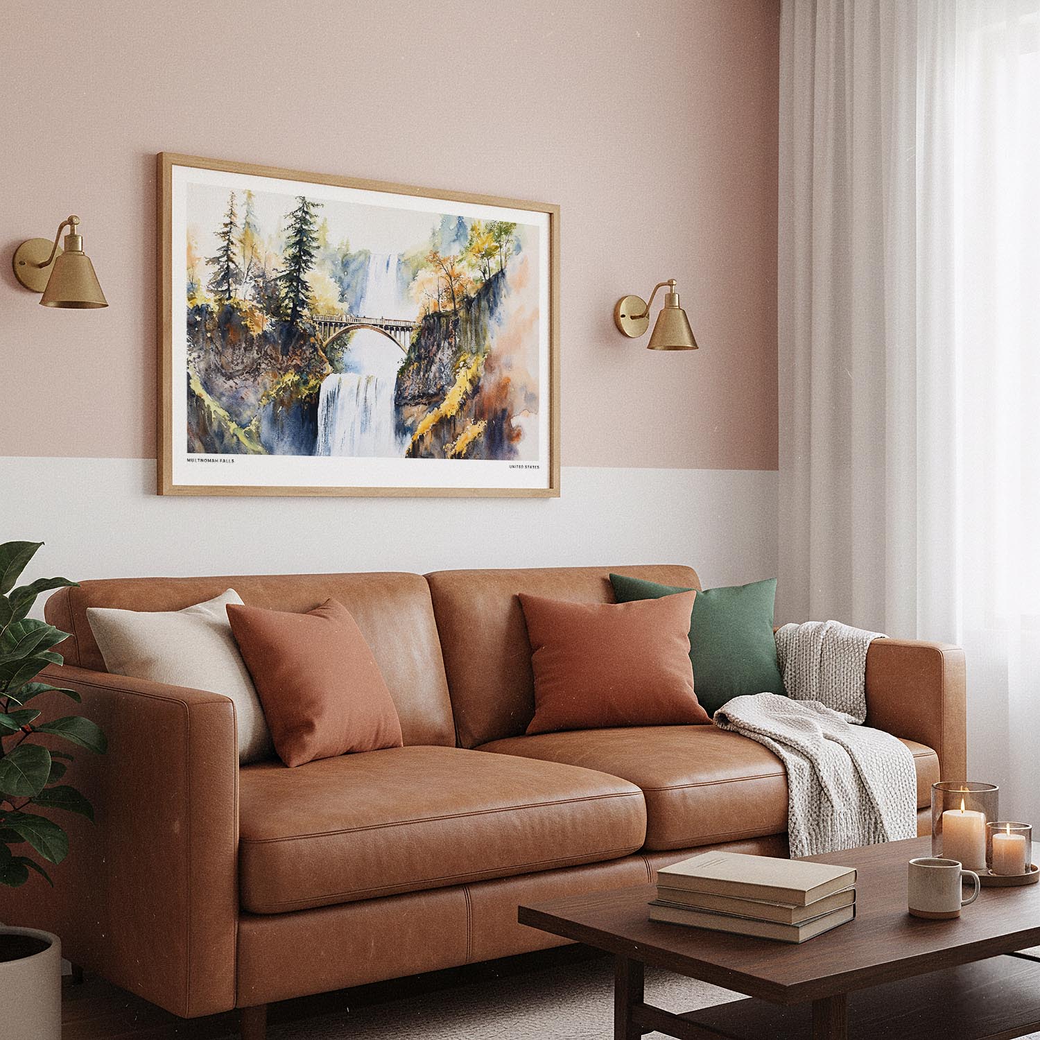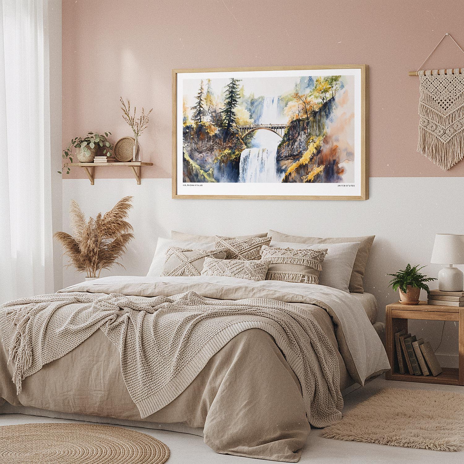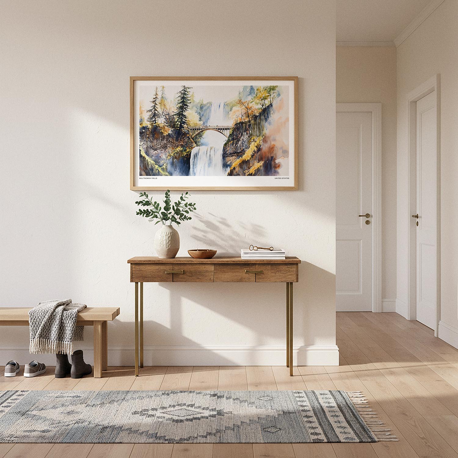 Capture the essence of Oregon’s natural beauty with this watercolor print of Multnomah Falls. The vibrant cascading water and surrounding autumn foliage create a perfect piece for nature lovers and travel enthusiasts.