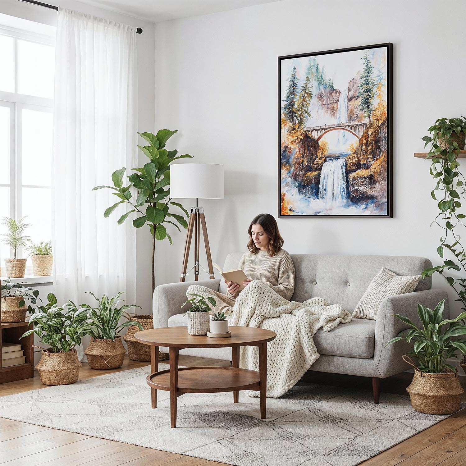 Multnomah Falls Watercolor Canvas Print – Majestic Oregon Landscape
