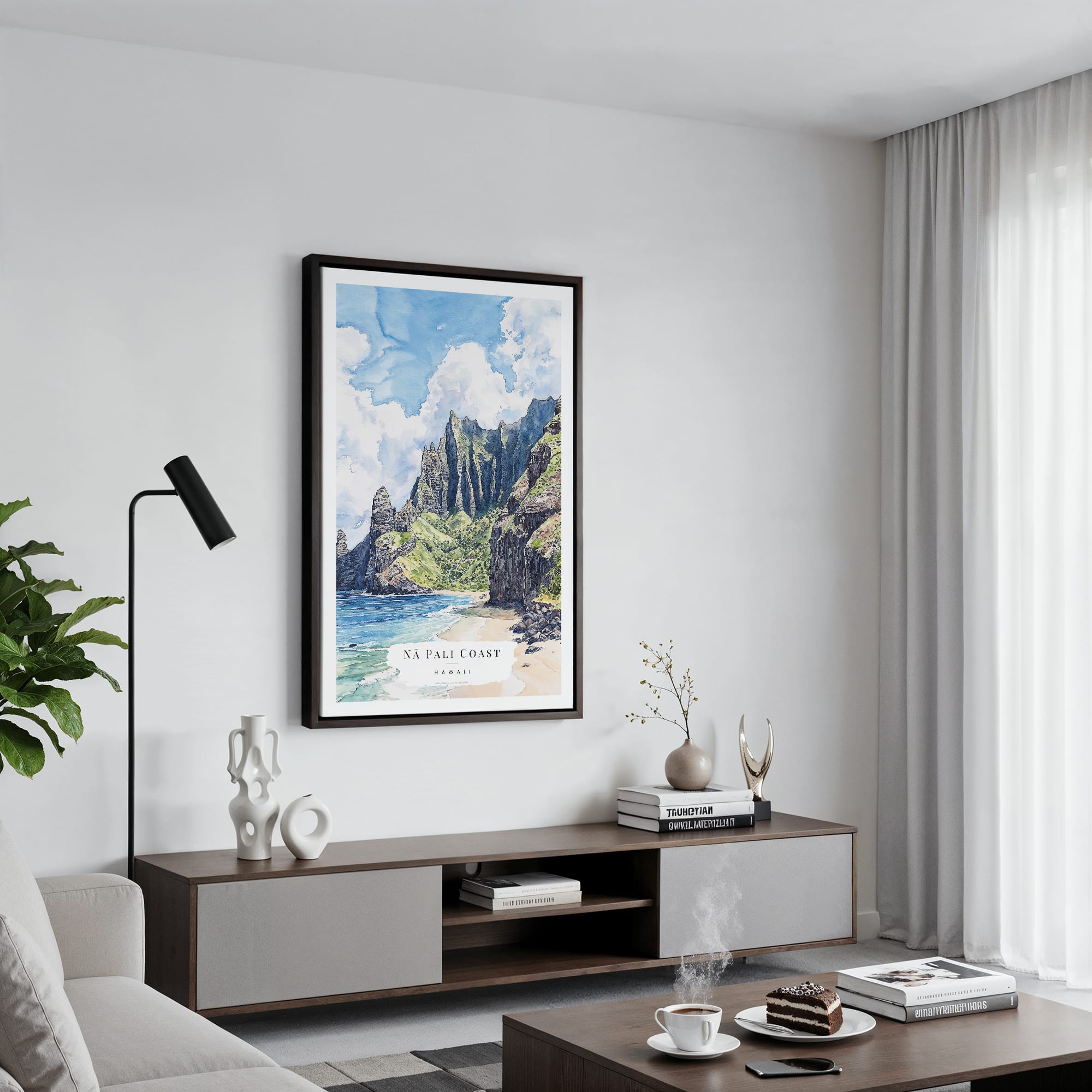 Na Pali Coast Canvas Art Print – Watercolor Beach Scene Wall Art