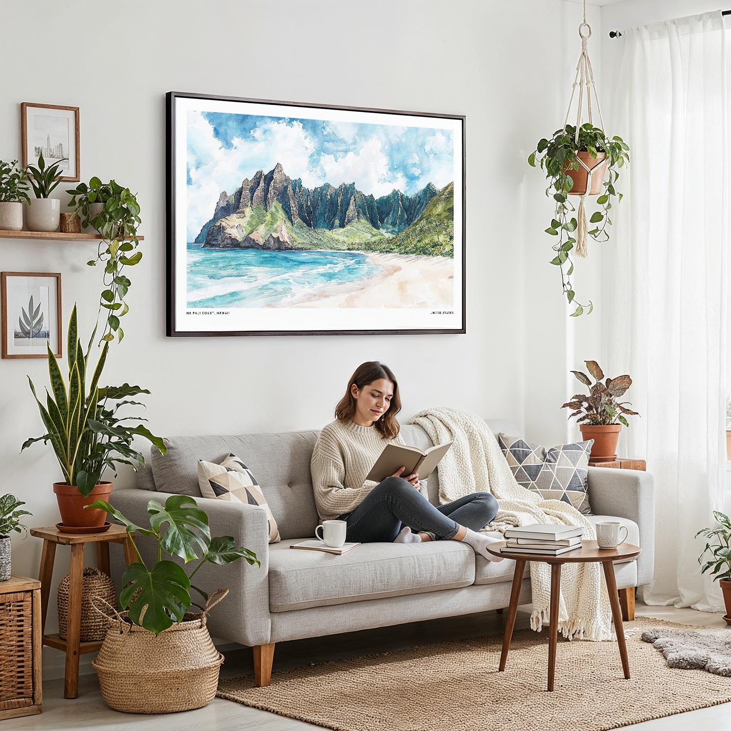 Transform your space with this canvas print of Hawaii’s Na Pali Coast. Featuring lush mountains and a tranquil shoreline, it’s ready to hang in any room, adding a touch of tropical paradise.