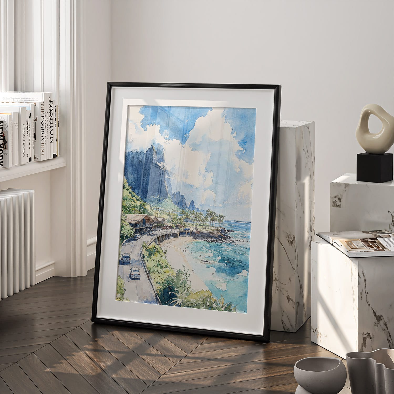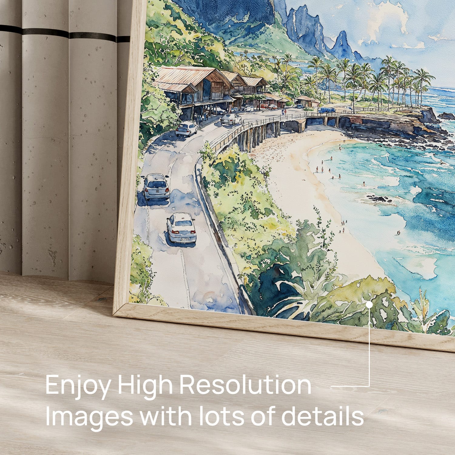 This digital download features a vibrant watercolor depiction of Hawaii’s Napali Coast, capturing lush greenery and azure waters. Enjoy instant access for easy printing to brighten your space.