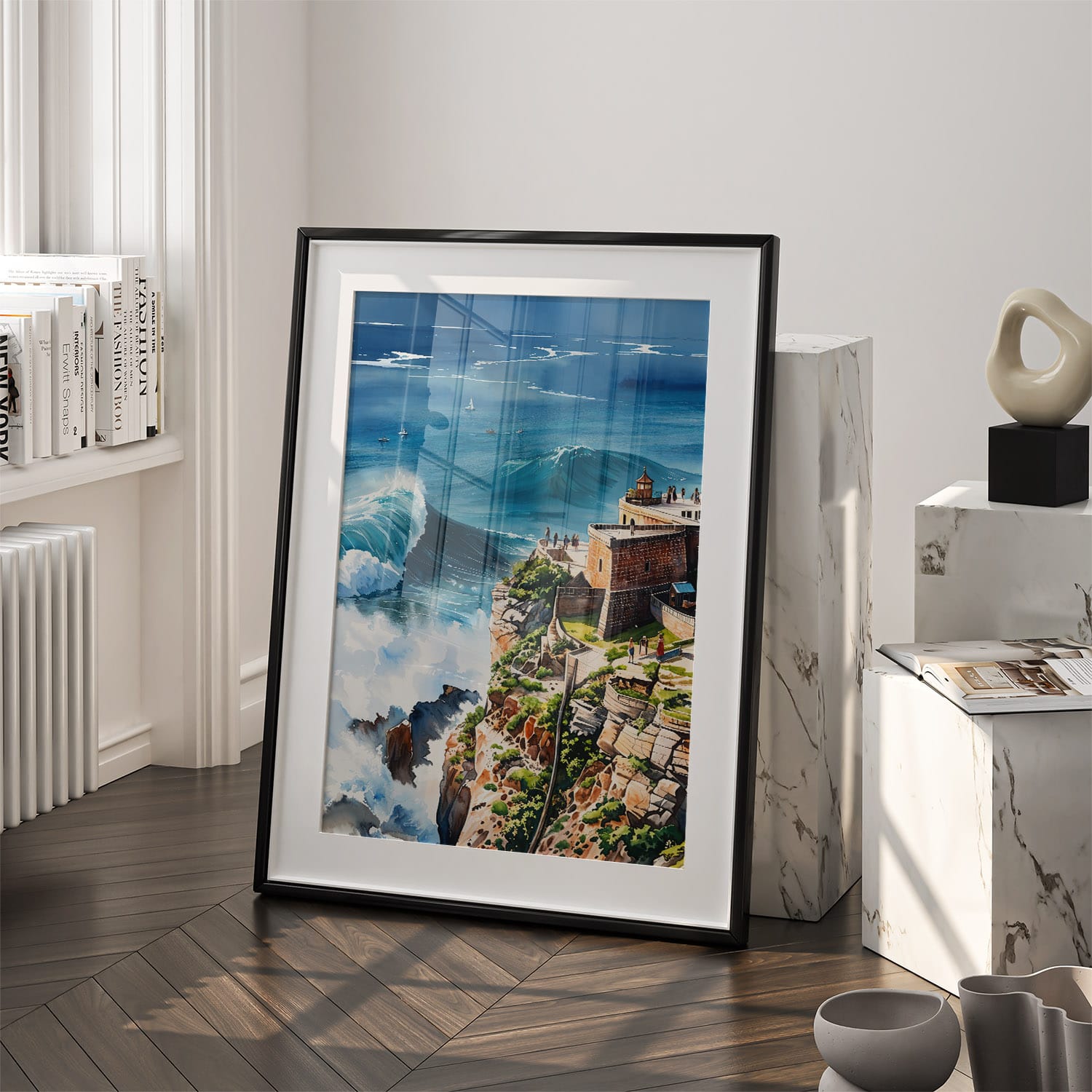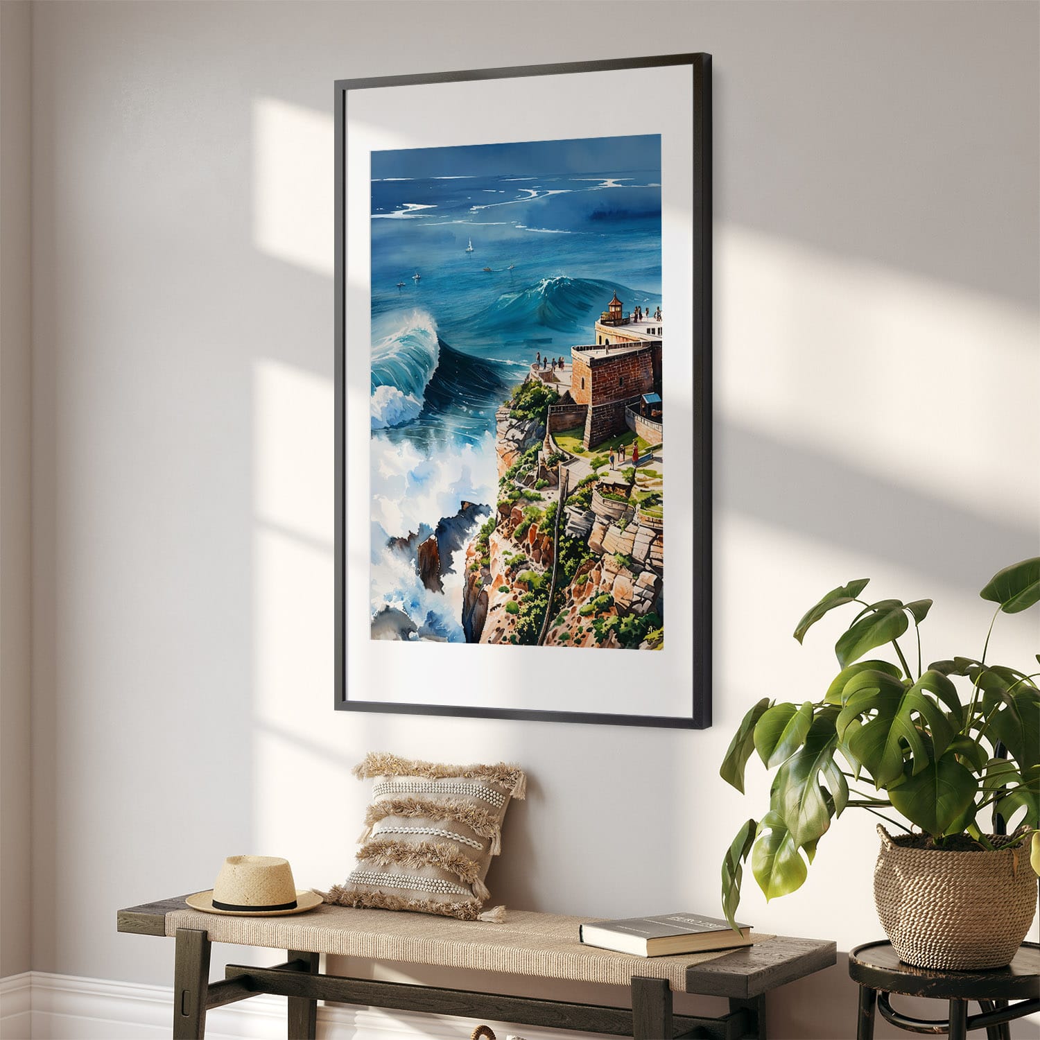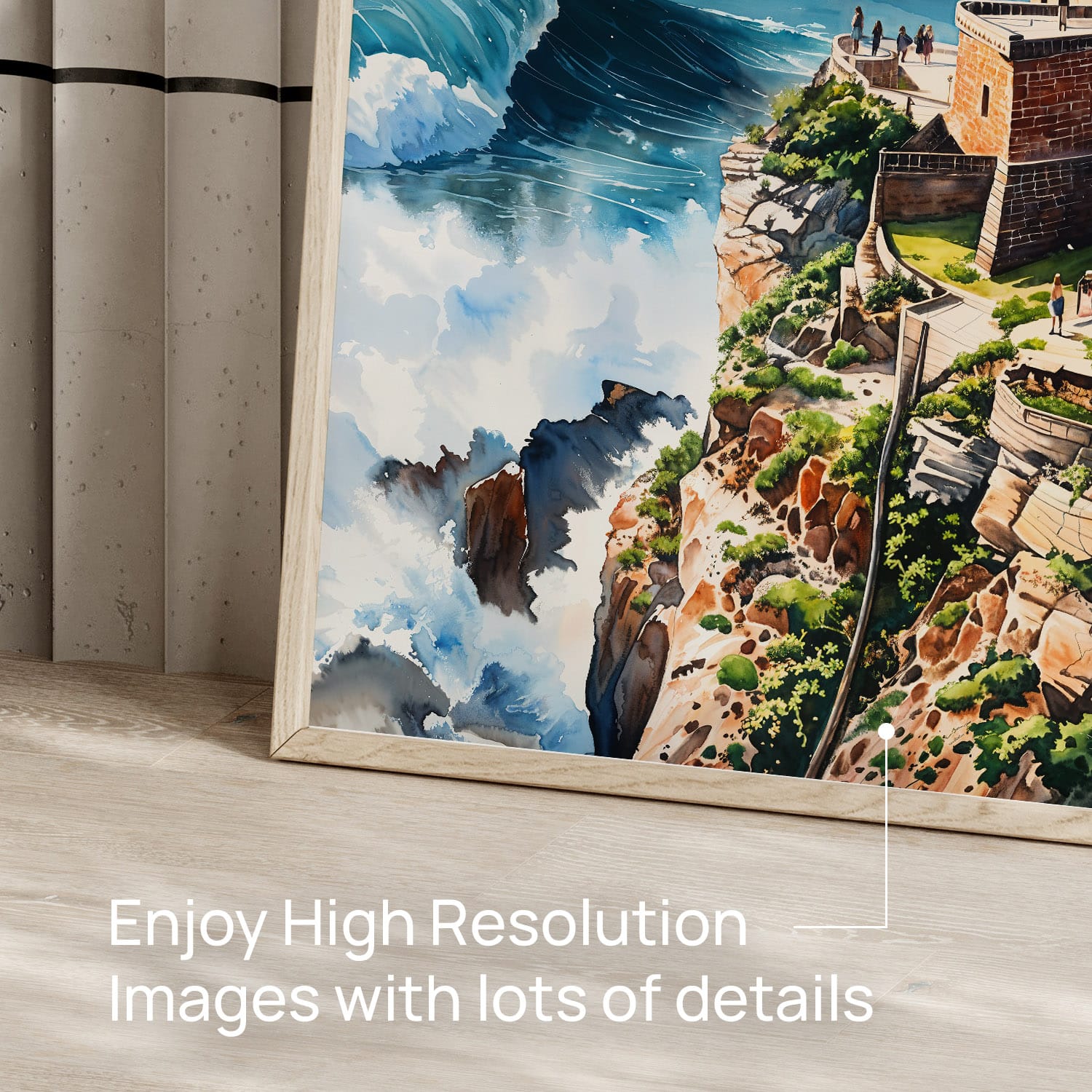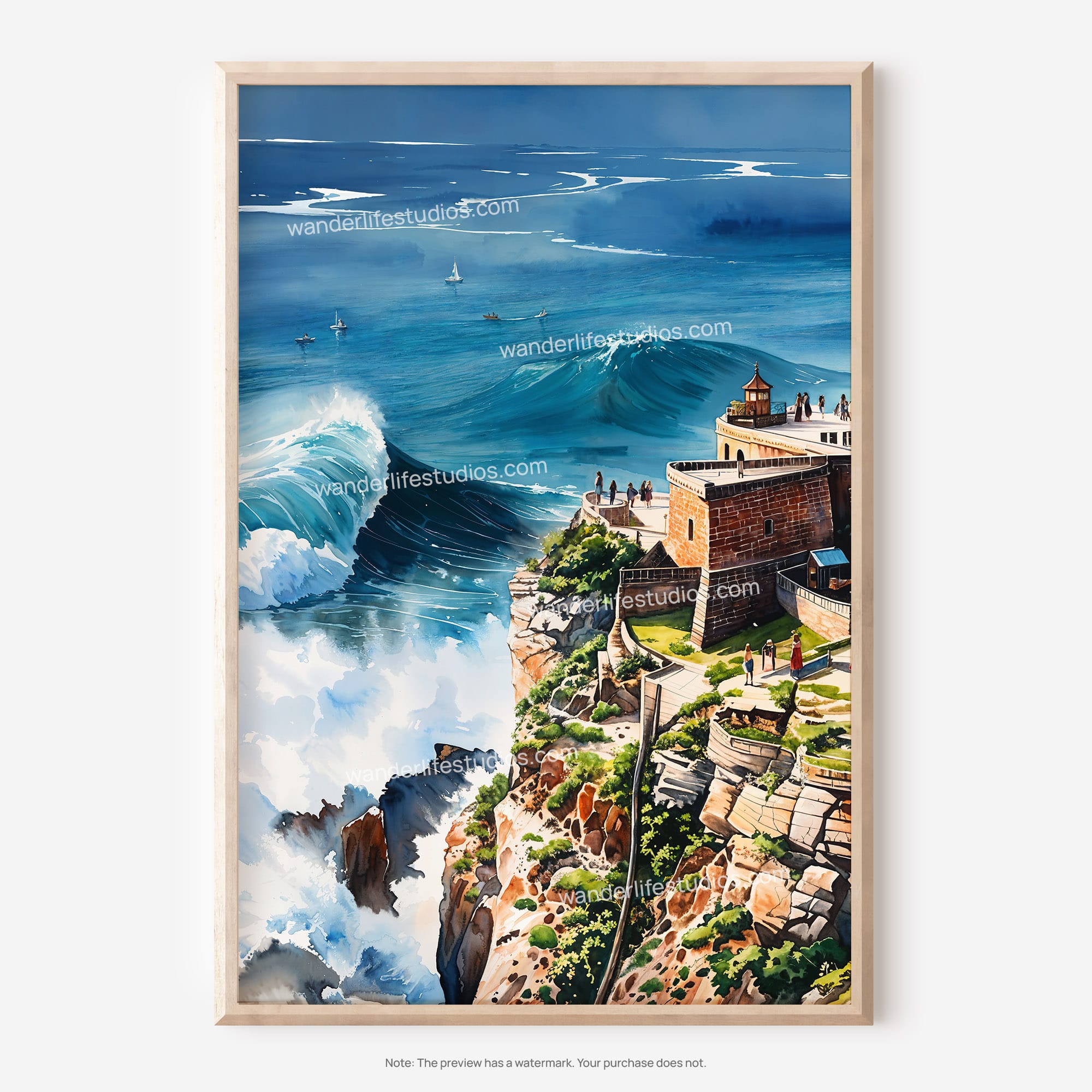 Nazare Portugal Watercolor Art – Coastal Landscape Digital Download