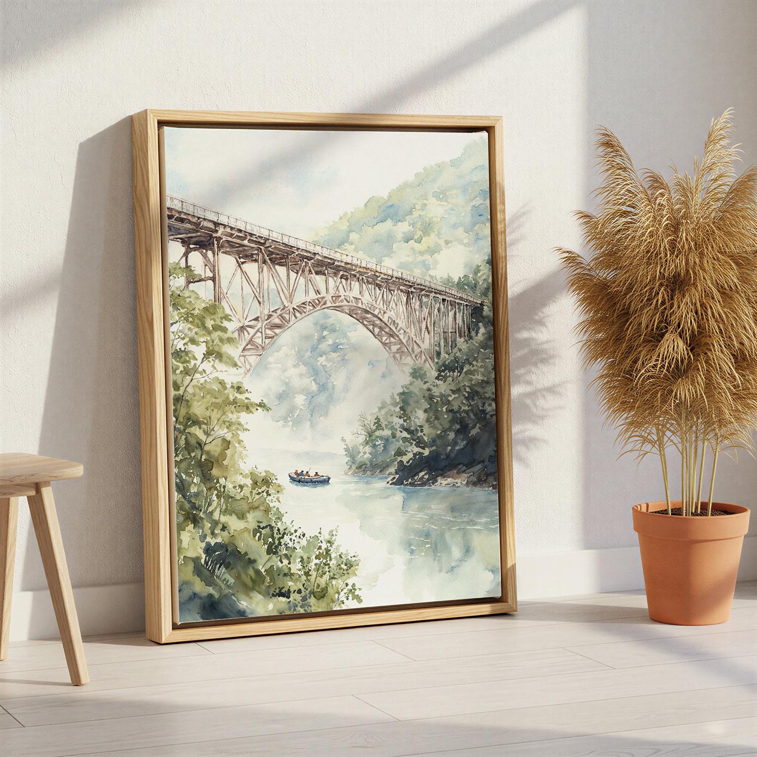 New River Gorge Bridge Watercolor Canvas Print – Nature-Inspired Wall Art