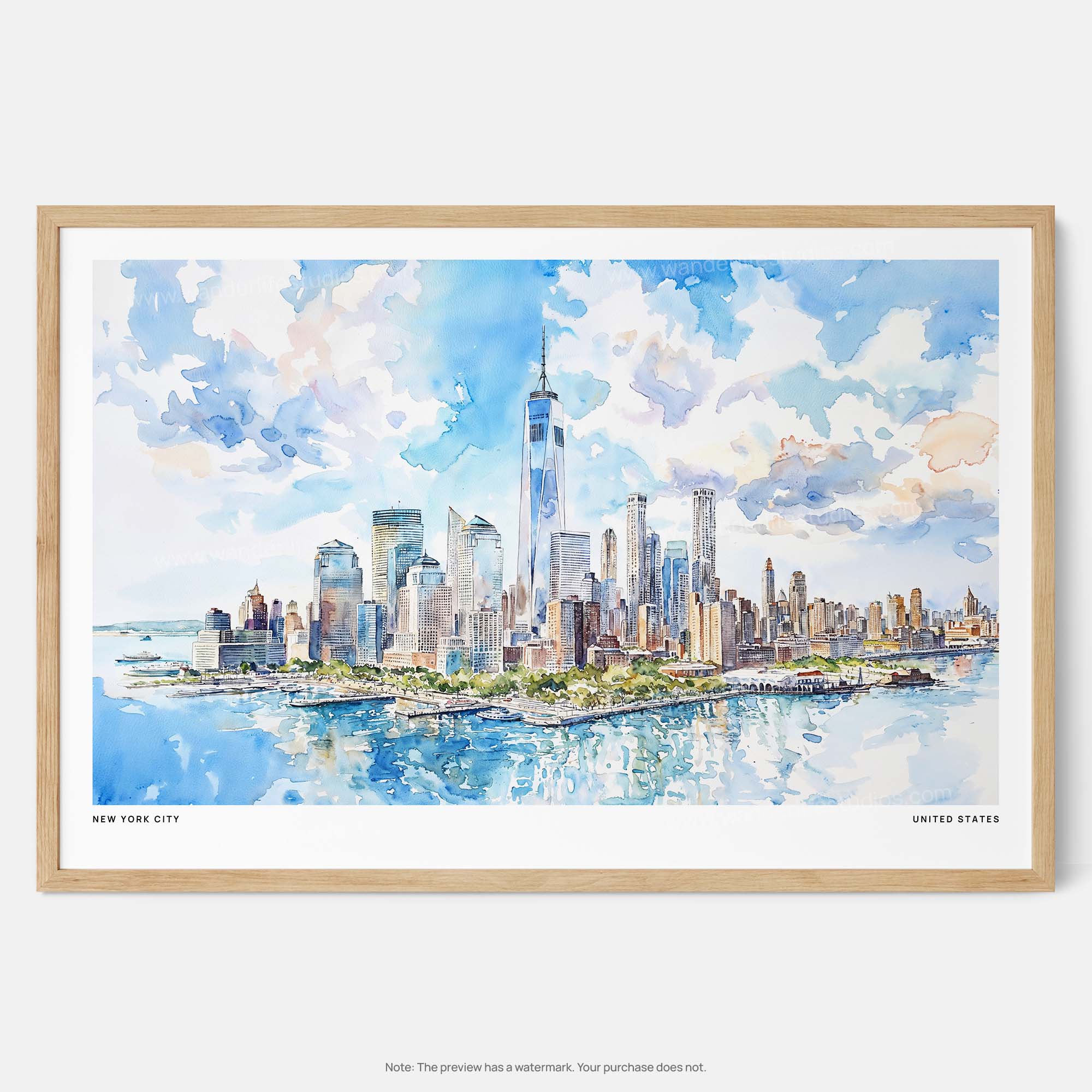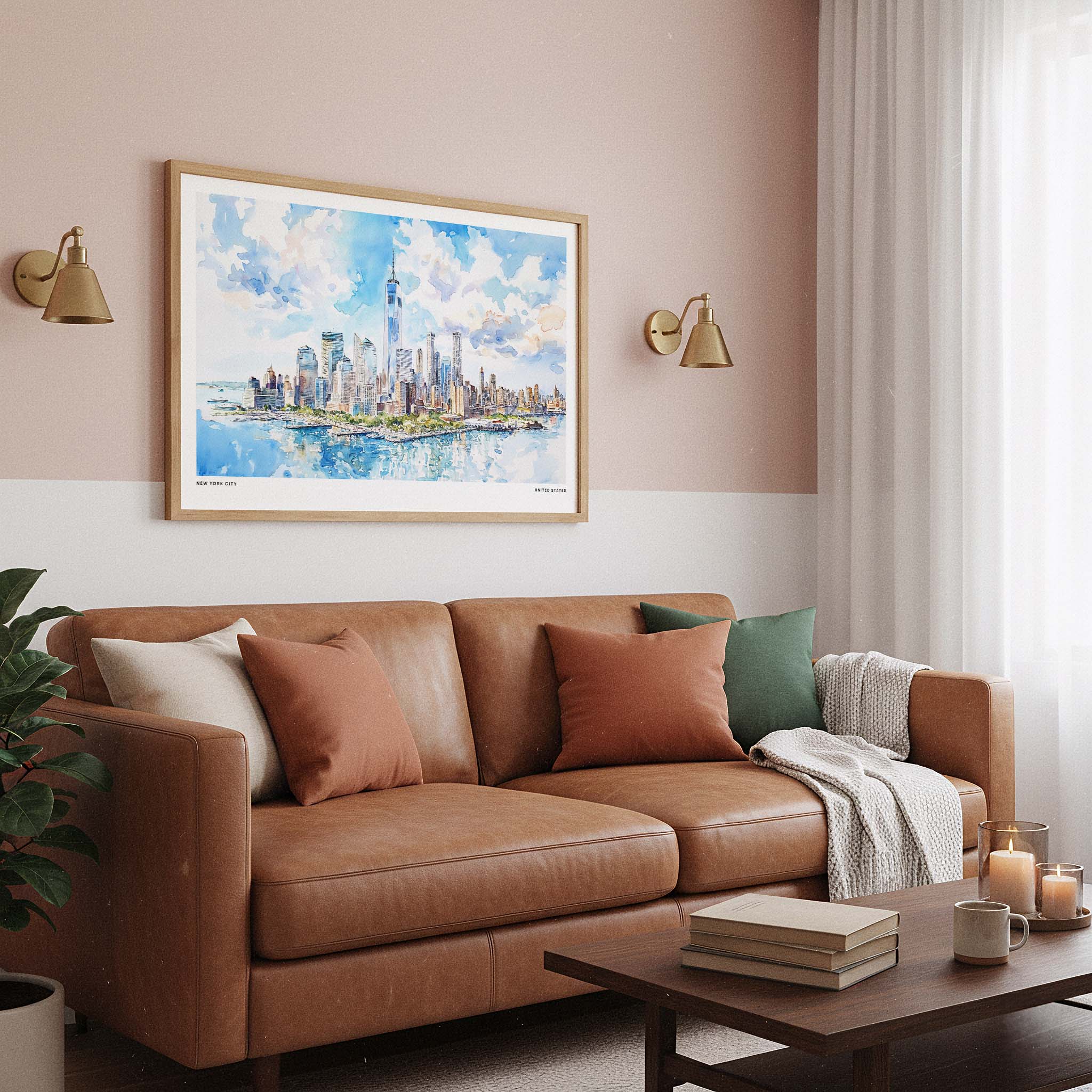 New York City Skyline Watercolor Art Print – Vibrant Urban Landscape Wall Art