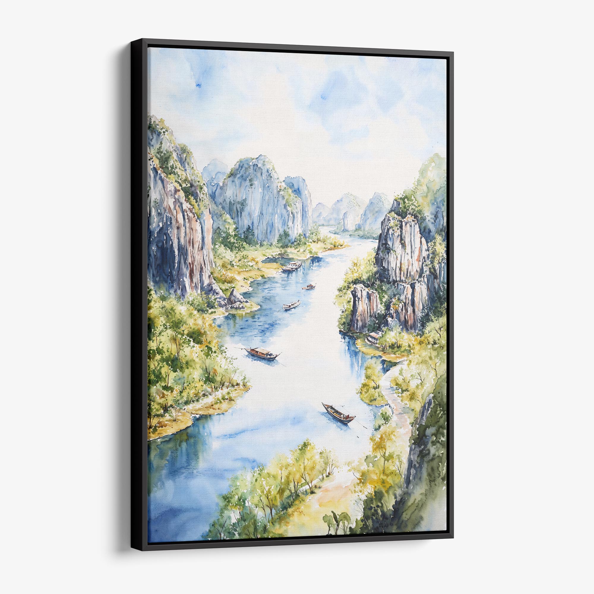 Ninh Binh Watercolor Canvas Print – Vibrant Landscape Wall Art
