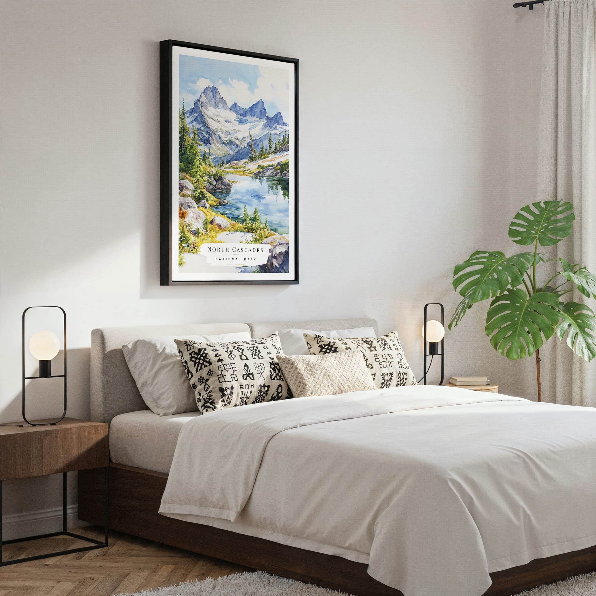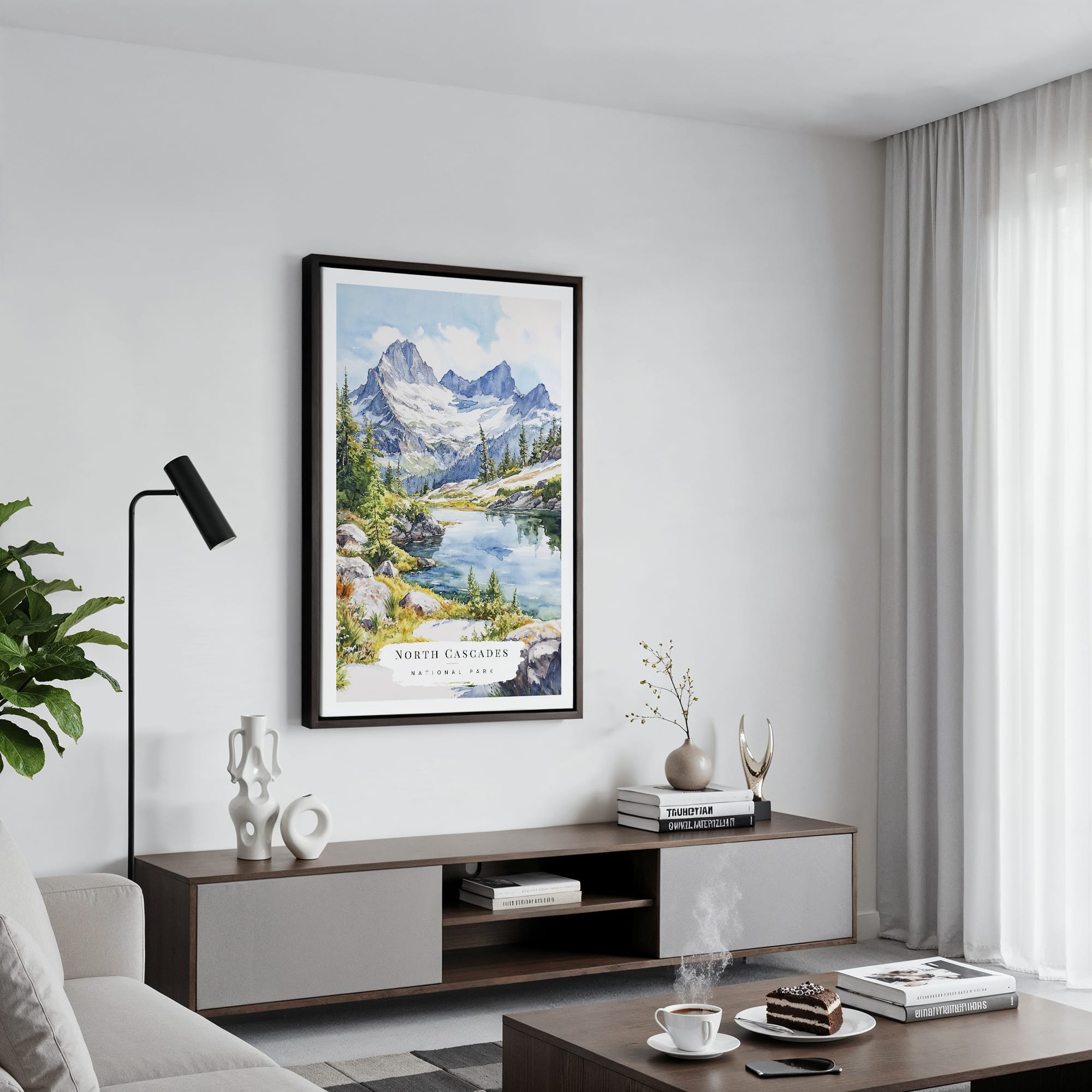 North Cascades National Park Watercolor Canvas Print – Scenic Mountain Landscape