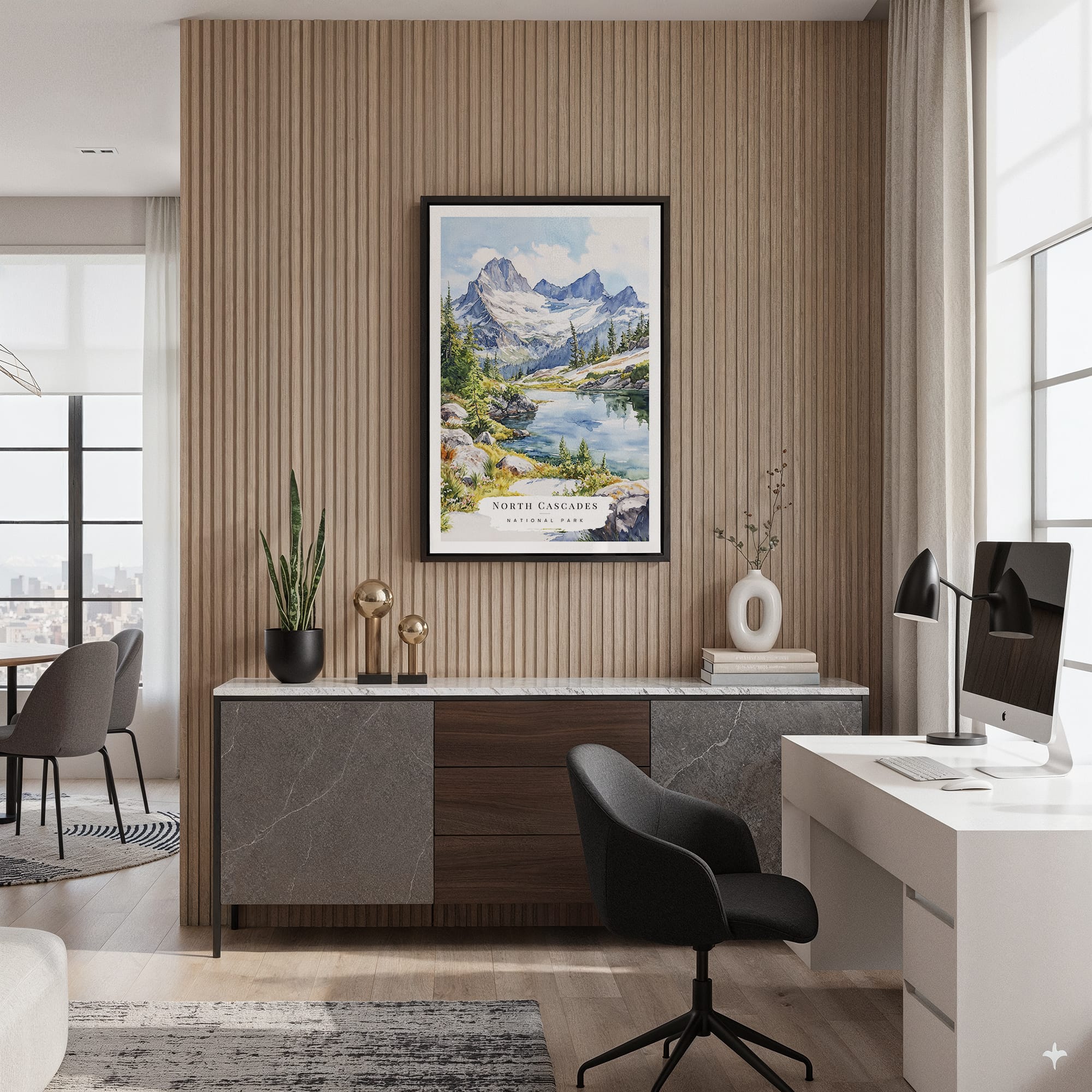 Brighten up your space with this North Cascades National Park canvas art print, featuring soft greens and blues that evoke a peaceful outdoor scene. Ideal for living rooms or offices, its easy-to-hang design makes it a lovely addition to any home.