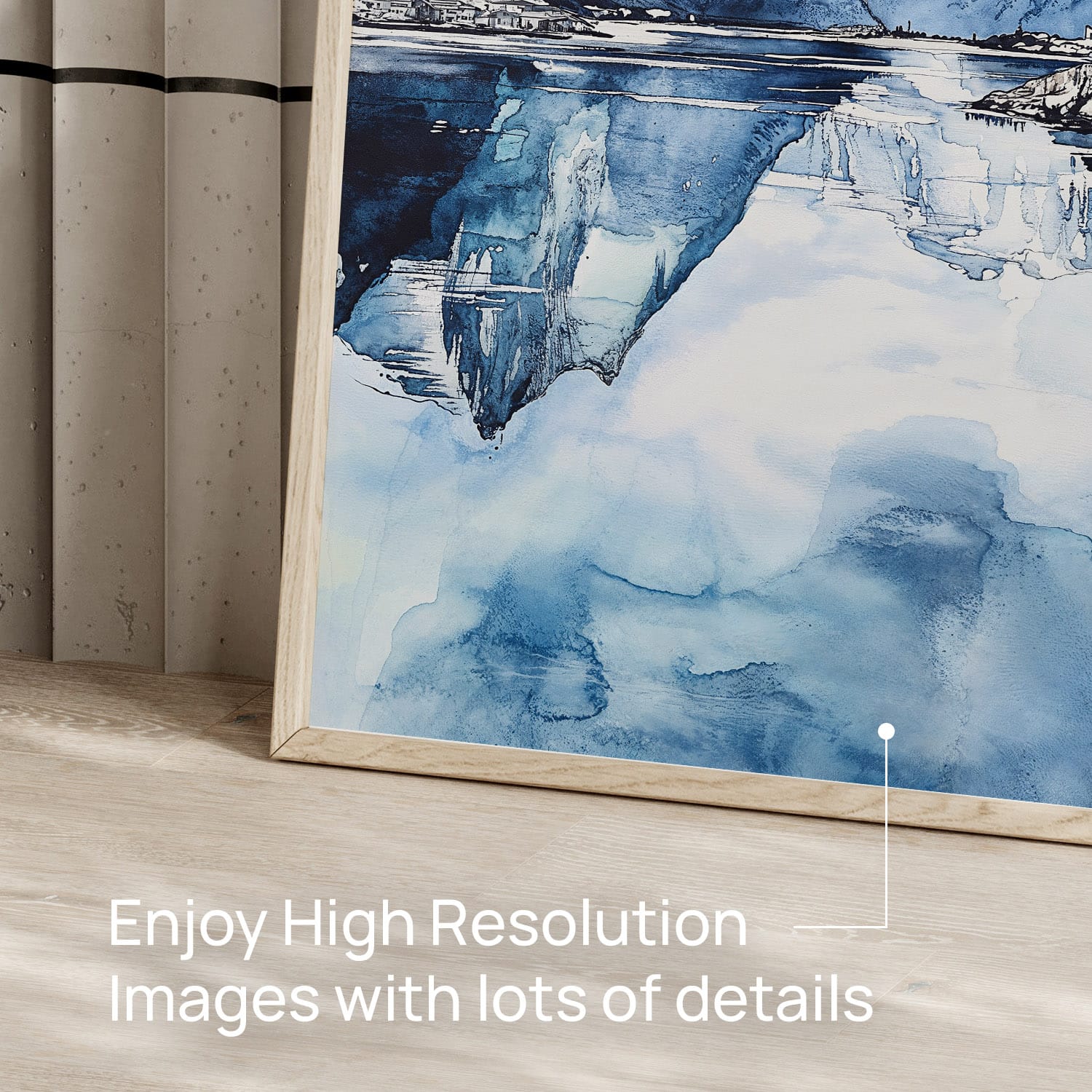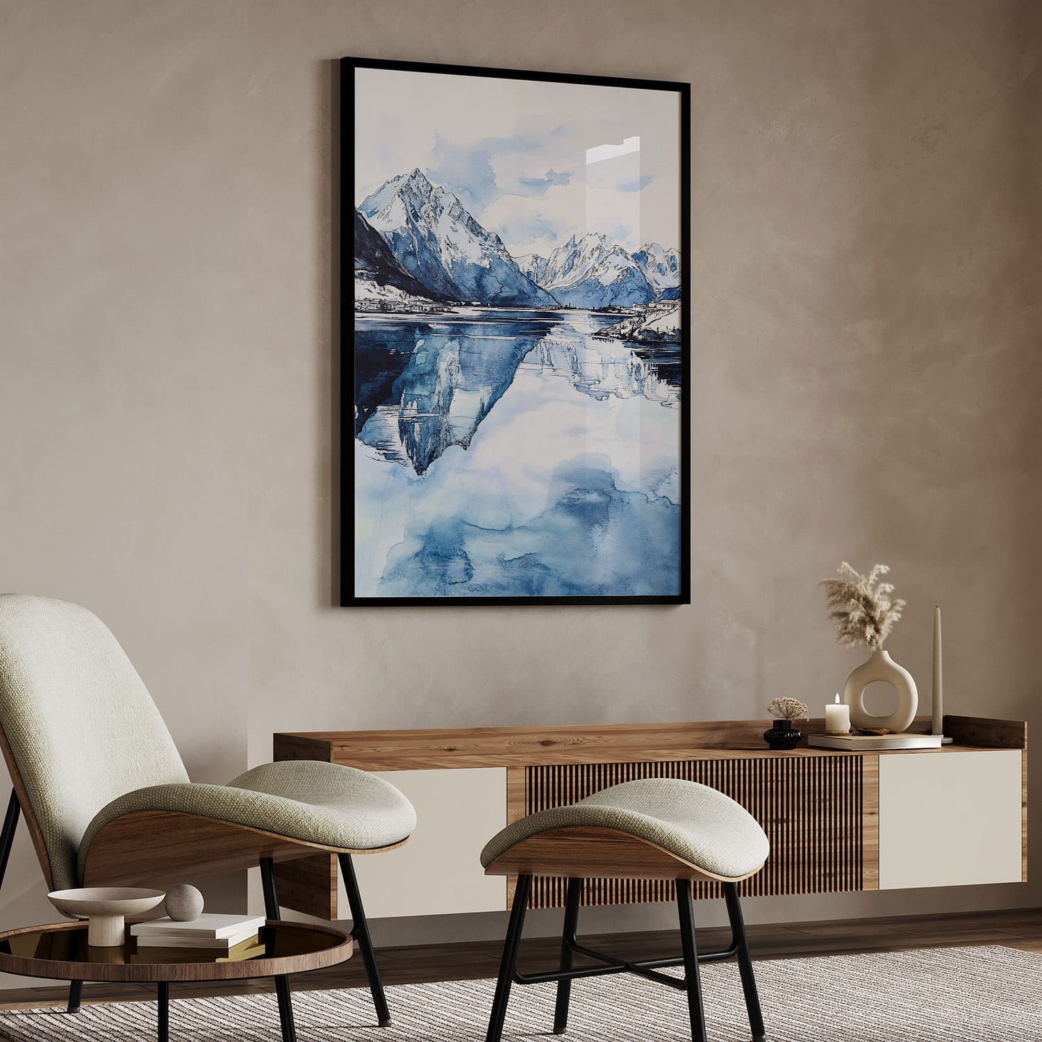 This artwork beautifully showcases Norway’s stunning landscapes, featuring majestic mountains mirrored in tranquil waters. The cool blue tones create a refreshing and calm atmosphere, perfect for enhancing your living room, bedroom, or office. Available in a high-resolution digital format, this piece allows for flexible printing options at home or through a local shop. Enjoy immediate access to elevate your decor or transform a wall into a serene escape.