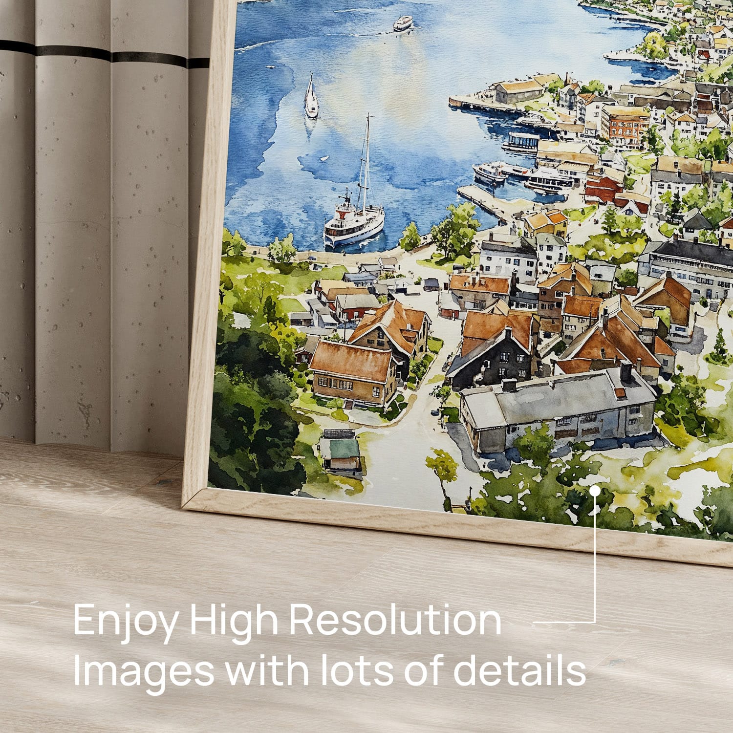 This artwork beautifully showcases the stunning fjords of Norway, blending lush landscapes with serene waters. The rich colors and captivating details evoke a sense of tranquility, making it an ideal addition to any space. This high-resolution digital file allows you to print easily at home or through a local print shop. Perfect for living rooms, bedrooms, or as a decor accent in offices, this artwork offers instant access to a picturesque escape. Enjoy the flexibility of refreshing your decor instantly.