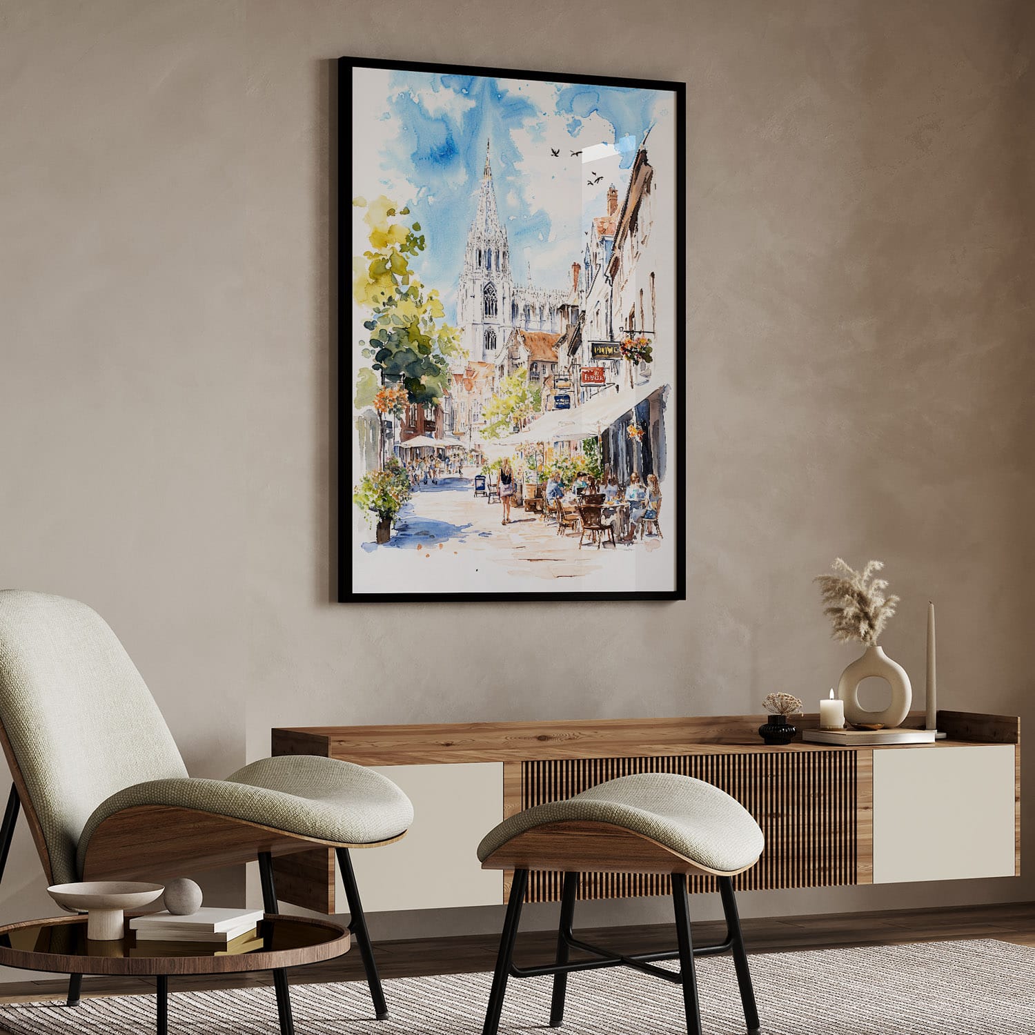 Norwich England Watercolor Art Print – Charming City Scene Digital Download
