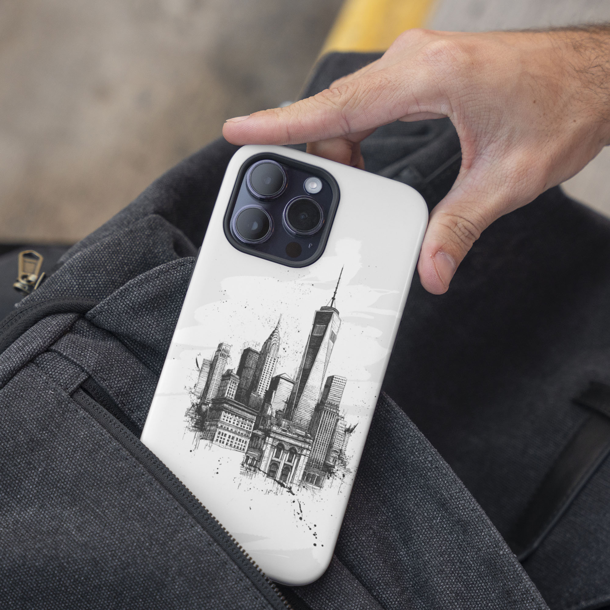 Capture the essence of New York City with this One World Trade Center phone case, adorned with a striking pencil drawing of the skyline. This case not only protects your device but also allows you to carry a piece of urban artistry daily. Designed to fit seamlessly into your lifestyle, it offers slim yet durable protection and precise cutouts for functionality. It’s a perfect personal accessory for city lovers or a thoughtful gift for those inspired by the bustling landscape of NYC.