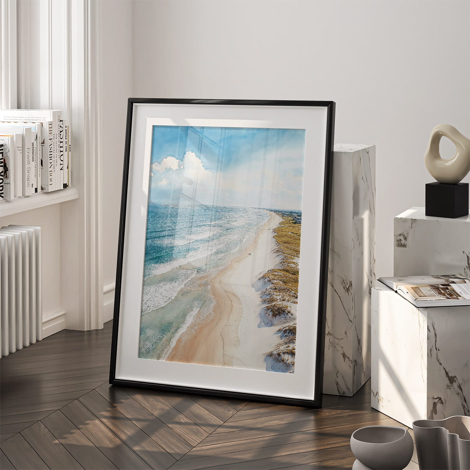 This artwork captures the serene beauty of the Outer Banks, showcasing gentle waves and a bright, expansive sky. Its calming tones evoke feelings of relaxation, making it an ideal addition to any room. Delivered as a high-resolution digital file, you can easily print this piece at home or at your local print shop. Perfect for living rooms, bedrooms, or beach-themed spaces, this art piece is a simple way to bring a touch of the coast into your home. Enjoy the flexibility of instant access and start decorating today.