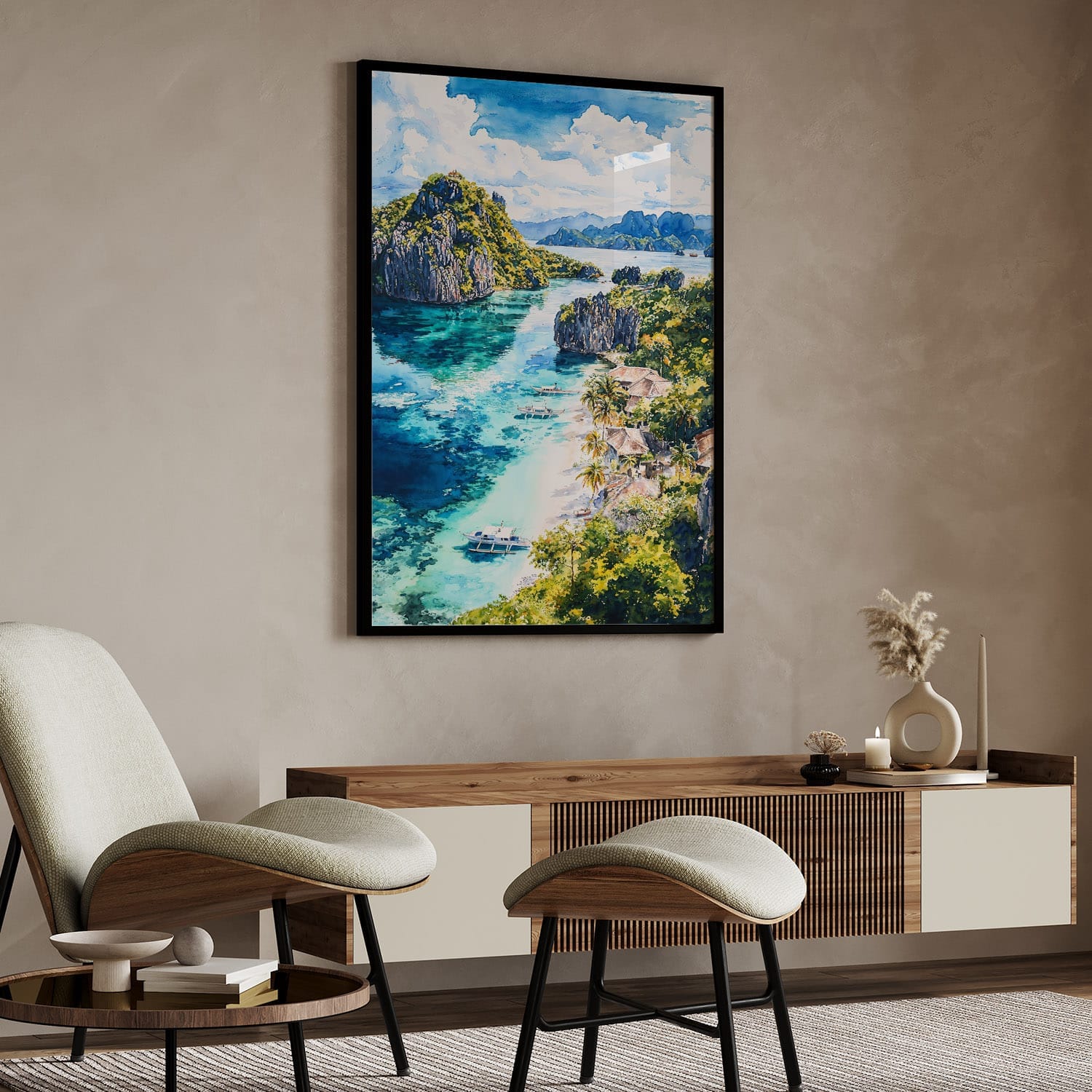 Immerse yourself in the stunning beauty of Palawan with this detailed watercolor artwork. Featuring lush greenery and crystal-clear waters, this piece brings a warm, inviting feel to any space. Offered as a high-resolution digital file, it easily adapts to various sizes for printing at home or with a professional service. Perfect for brightening up living rooms, bedrooms, or offices, this art lets you celebrate your travels or inspire future adventures. Enjoy the flexibility of instant access and add a touch of nature to your walls.