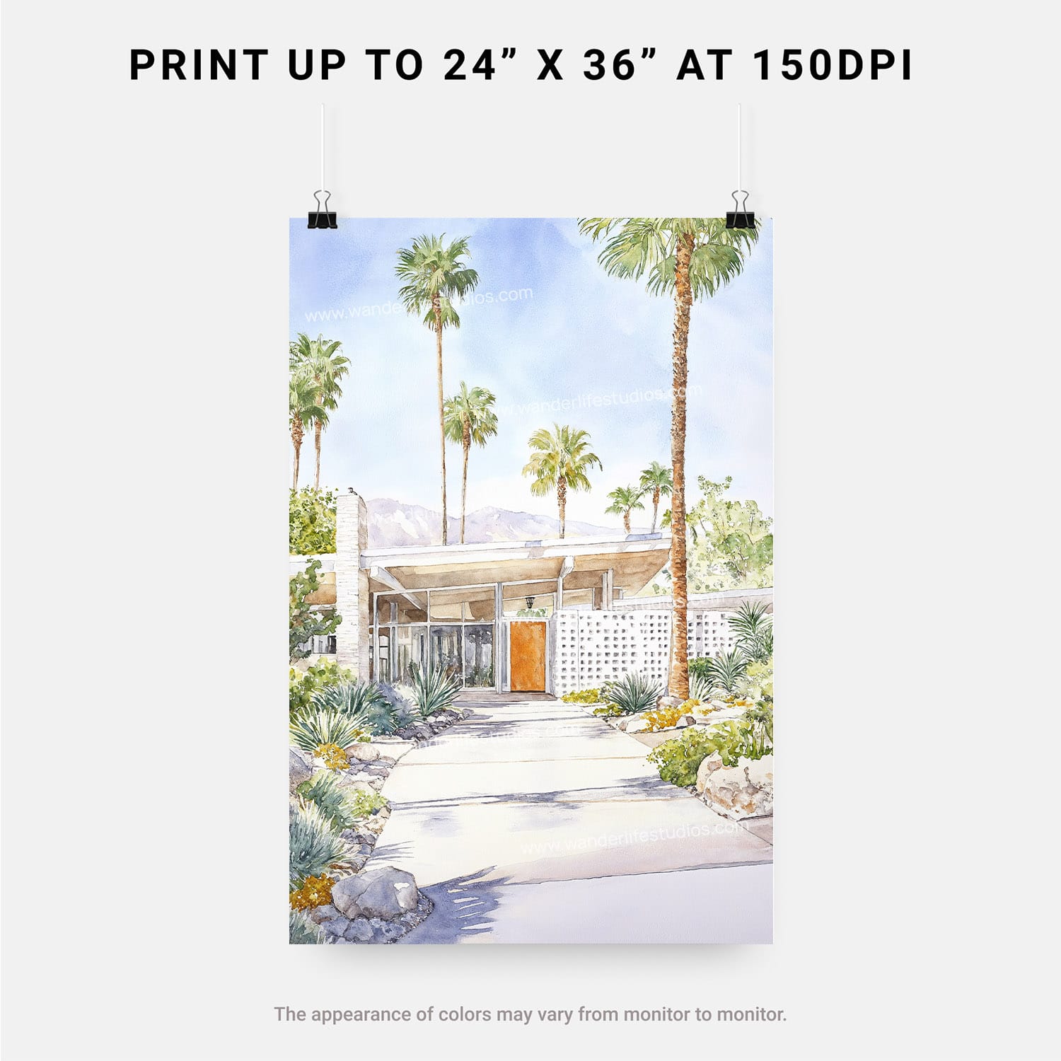 Palm Springs Watercolor Digital Download Wall Art