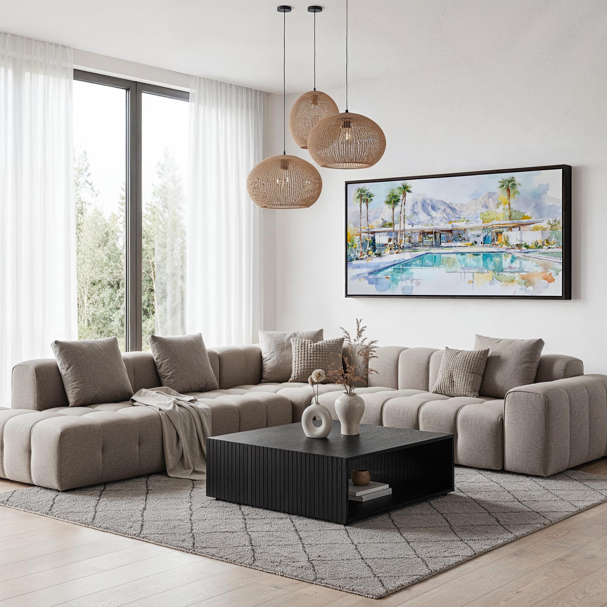 Transform your space with this Palm Springs panorama canvas print. Showcasing a tranquil pool scene surrounded by midcentury architecture, it’s perfect for adding a relaxed vibe to living rooms or offices.