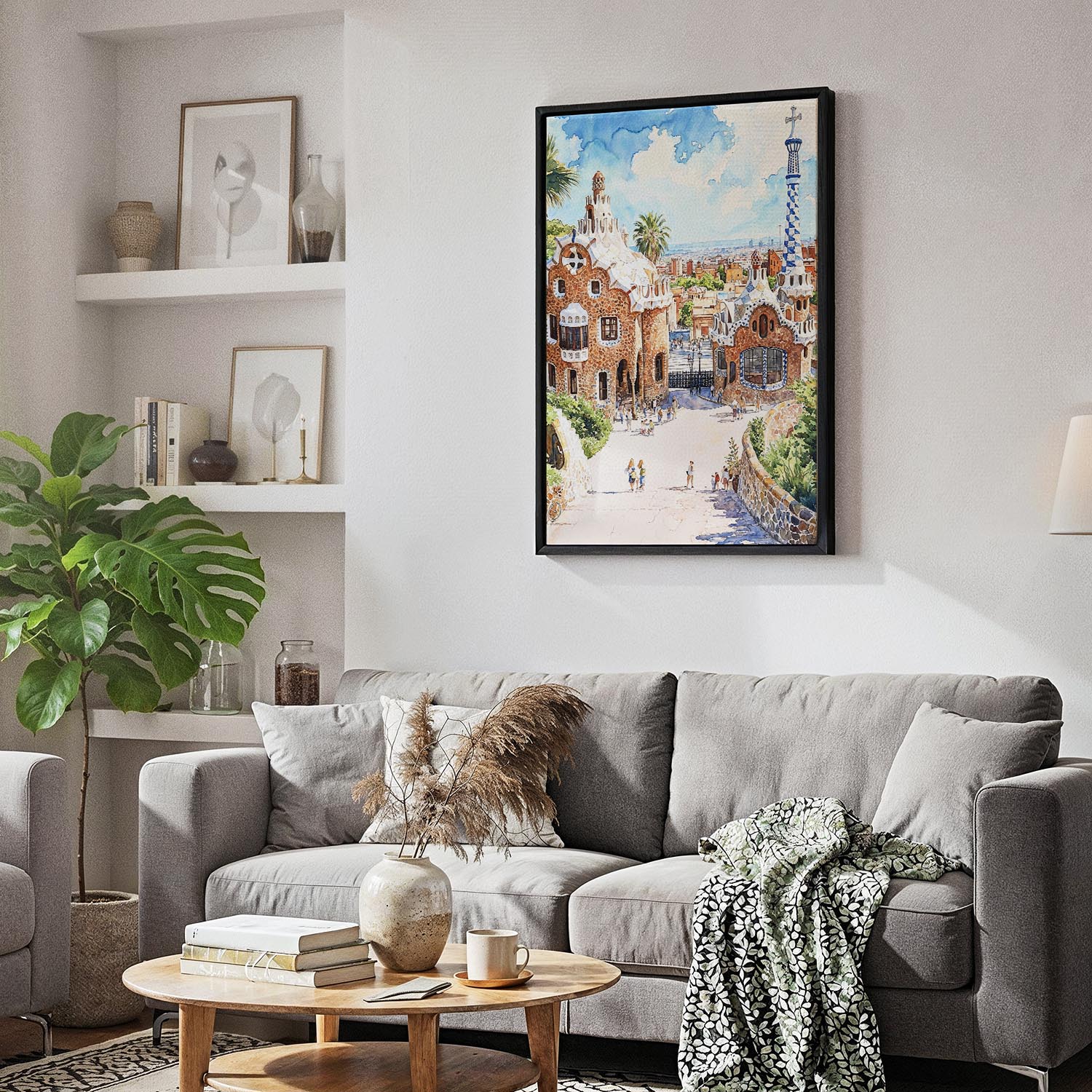 Park Güell Canvas Print – Watercolor Artwork of Barcelona's Iconic Architecture